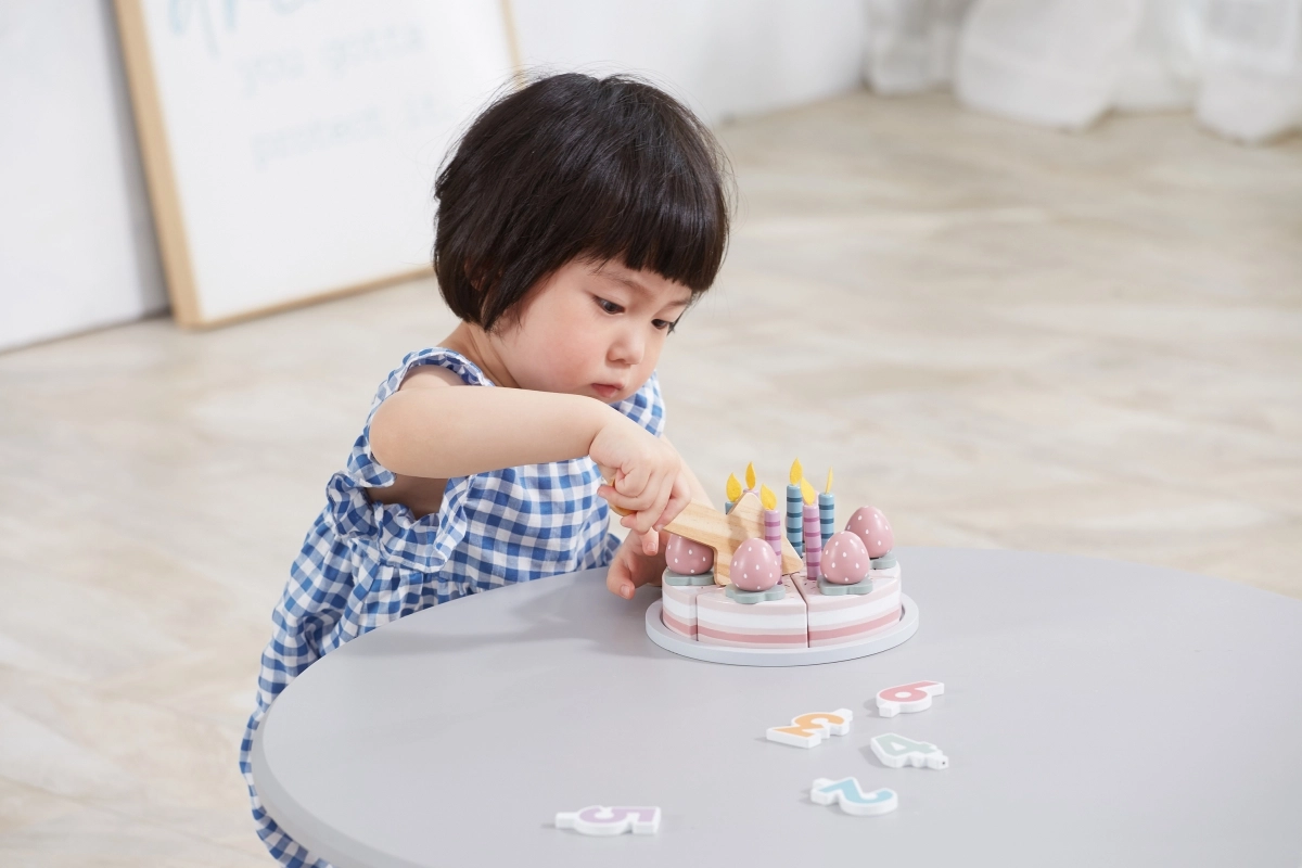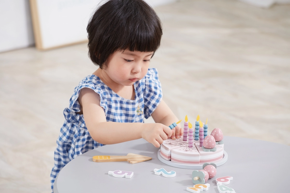 Το κόψιμο, το στόλισμα και το σερβίρισμα της τούρτας καλλιεργούν τη φαντασία, τη λεπτή κινητικότητα και την επικοινωνία στο ομαδικό παιχνίδι.