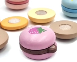 Η ασφαλής κατασκευή από λείο ξύλο και οι μη τοξικές μπογιές εξασφαλίζουν ήρεμη εμπειρία σε καθημερινό παιχνίδι. Το παιχνίδι με τα μακαρόν αναπτύσσει τον συντονισμό χεριού–ματιού, ενισχύει τη φαντασία και τη μάθηση μέσω μίμησης.