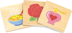 Το εκπαιδευτικό παιχνίδι ξύλινο παζλ VIGA προσφέρει έναν ιδανικό τρόπο για τα παιδιά να αναπτύξουν τη σκέψη και τον συντονισμό τους. Ο στόχος είναι η αντιστοίχιση αντικειμένων με τις επιλεγμένες αισθήσεις, συμπεριλαμβάνοντας ποικίλα καθημερινά αντικείμενα.