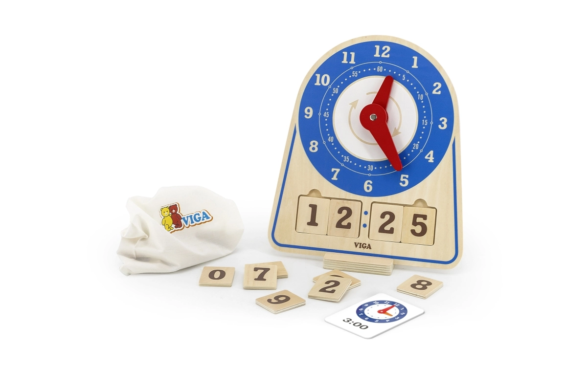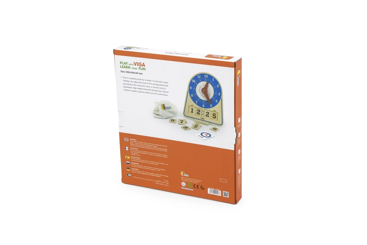 Το ξύλινο ρολόι για εκμάθηση χρόνου από τη Viga είναι ένα εξαιρετικό εκπαιδευτικό βοήθημα που συνδυάζει διασκέδαση και μάθηση. Αυτό το αυτοστήρικτο παιχνίδι περιλαμβάνει 12 εκπαιδευτικές κάρτες που βοηθούν τα παιδιά να μάθουν την ώρα. Το παιδί μπορεί να ρυθμίσει μόνο του οποιαδήποτε ώρα με τη βοήθεια των καρτών ή να μάθει να ακολουθεί το ρολόι. Η οικολογική τσάντα επιτρέπει την εύκολη αποθήκευση των αξεσουάρ.