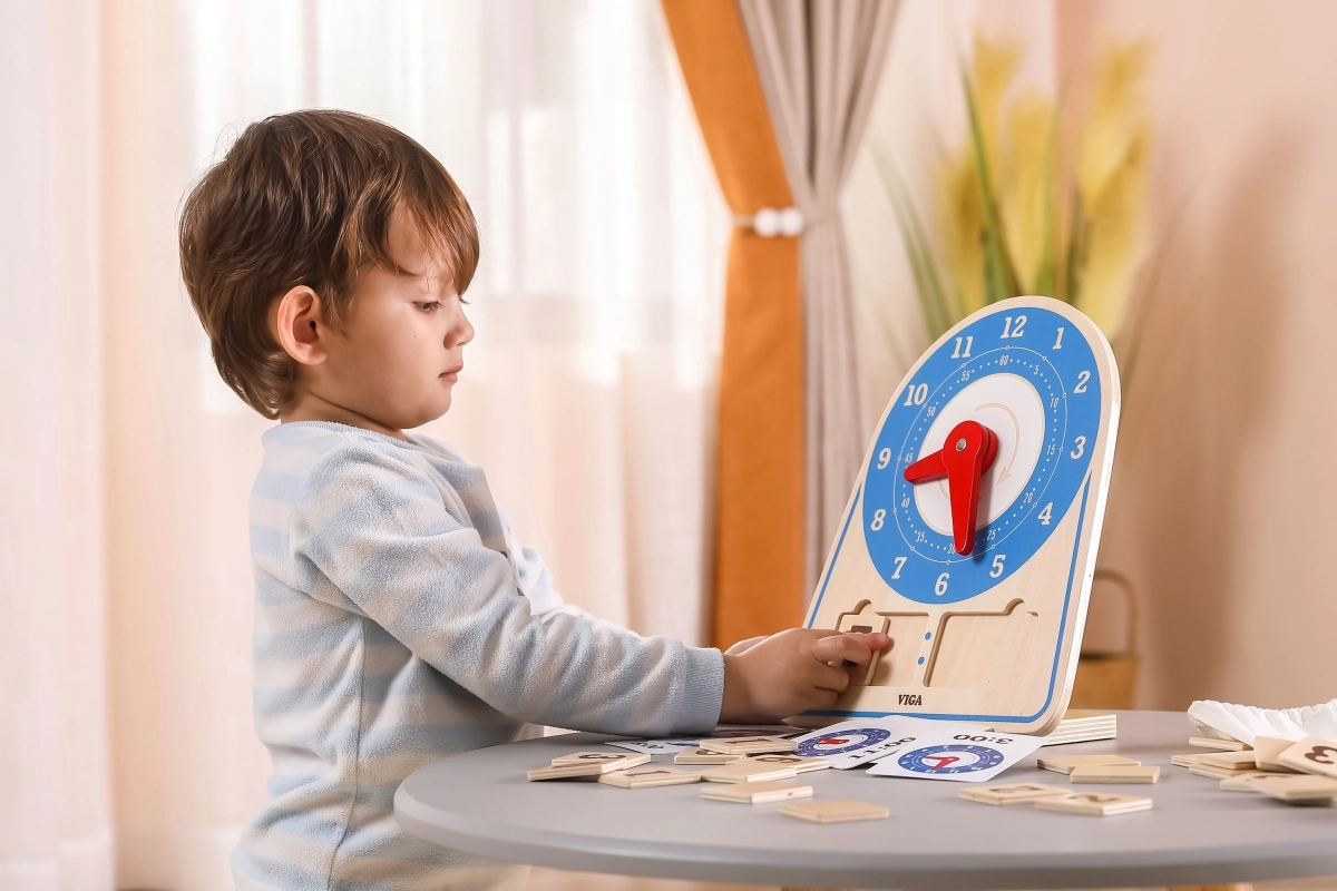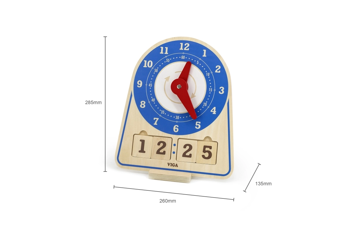 Ξύλινο ρολόι για διδασκαλία της ώρας και του χρόνου από τη φημισμένη μάρκα Viga αποτελεί έναν εξαιρετικό τρόπο να περνάτε χρόνο με το παιδί σας αποτελεσματικά και διασκεδαστικά. Με αυτό το παιχνίδι τα παιδιά αναπτύσσουν την συντονισμένη κίνηση χεριού-ματιού και την λογική σκέψη.