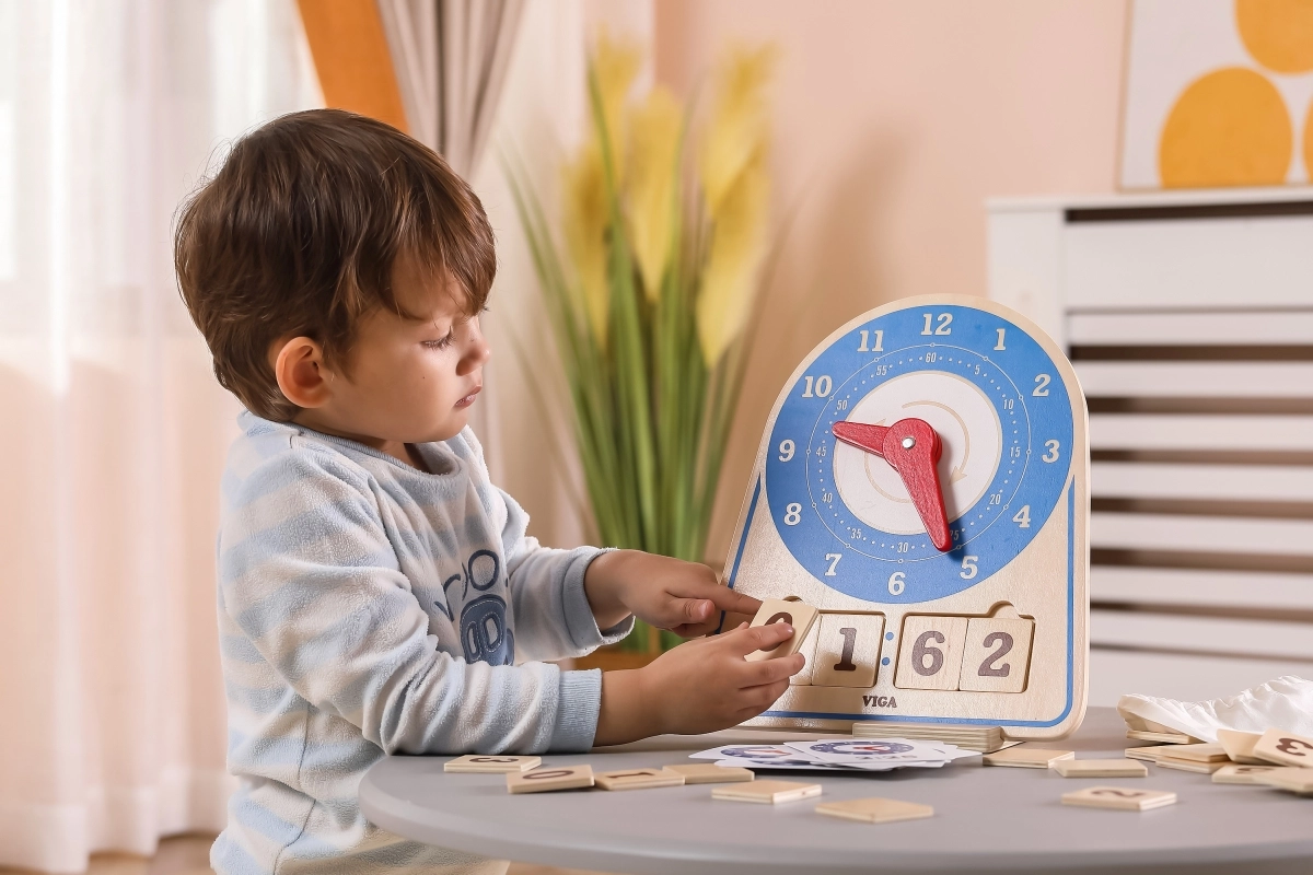 Επιτρέπει στα παιδιά να αναπτύξουν την ικανότητα αναγνώρισης της ώρας και των αριθμών, συνδυάζοντας αναλογική και ψηφιακή απεικόνιση.