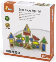 Με αυτό το σετ ξύλινων κύβων τα παιδιά ανακαλύπτουν τον κόσμο των χρωμάτων και των σχημάτων. Κάθε κύβος έχει σχεδιαστεί ώστε να ενισχύει τη φαντασία και να διδάσκει στα παιδιά νέες δεξιότητες. Με αυτό το παιχνίδι τα παιδιά μπορούν να χτίζουν διάφορες δομές και να εξασκούν βασικές μαθηματικές ικανότητες.