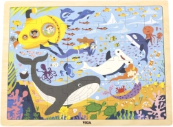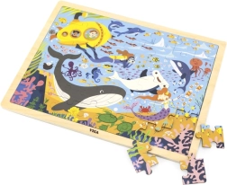 Με το ξύλινο παζλ Θαλάσσια Ζωή θα ανακαλύψετε μια υπέροχη ποικιλία θαλάσσιων ζώων, όπως φάλαινες και ψαράκια, όλα μαζί με ένα κίτρινο υποβρύχιο.