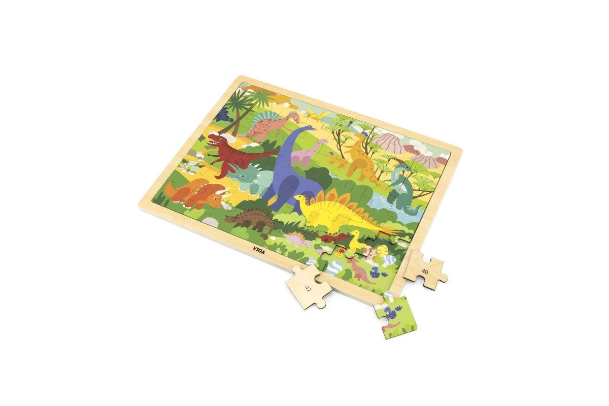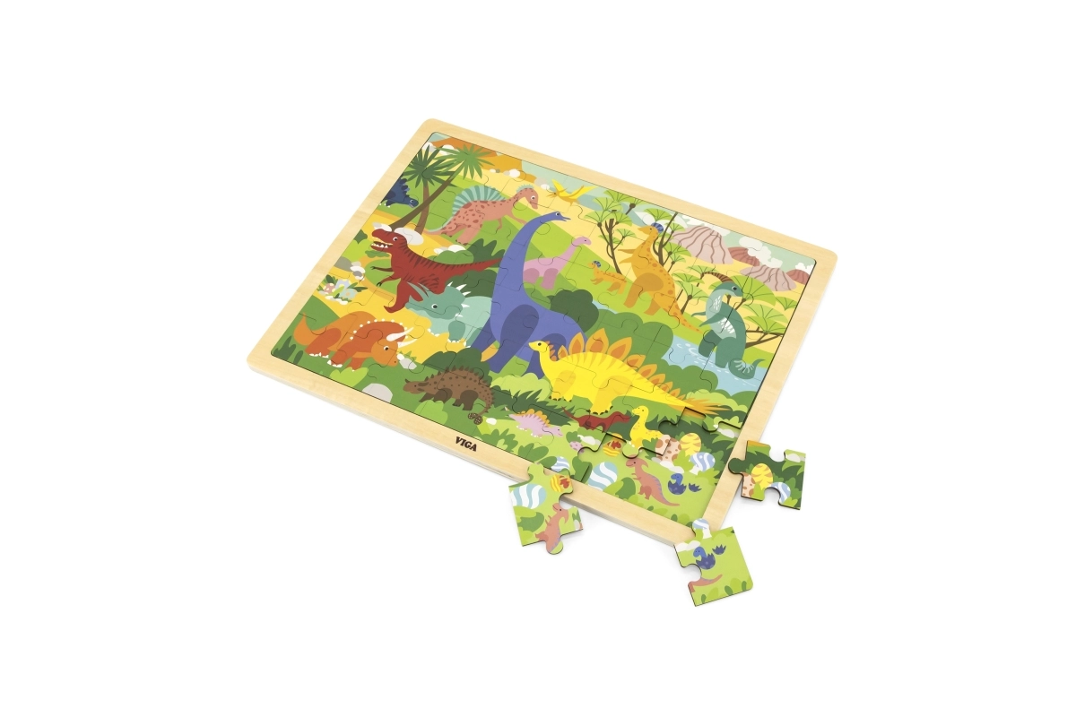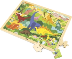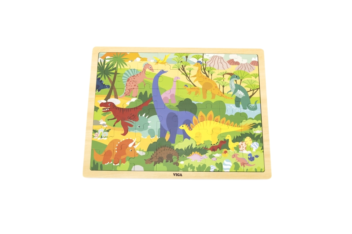 Προσφέρετε στα παιδιά διασκεδαστική και εκπαιδευτική απασχόληση με το ξύλινο παζλ με θέμα τους δεινοσαύρους. Χάρη στα 48 κομμάτια, είναι ιδανικό ως το πρώτο «μεγαλύτερο» παζλ που αναπτύσσει σταδιακά τις δεξιότητες και την αυτοπεποίθηση των μικρών δημιουργών. Τα κομμάτια είναι ανθεκτικά, πιάνονται εύκολα και τοποθετούνται άνετα στην ξύλινη βάση με πλαίσιο.