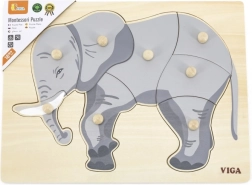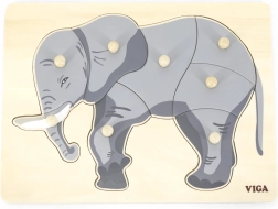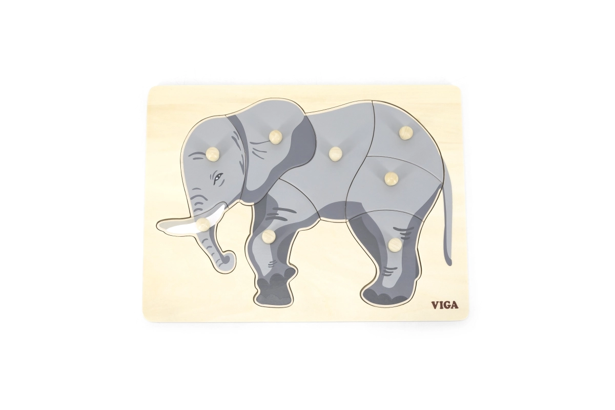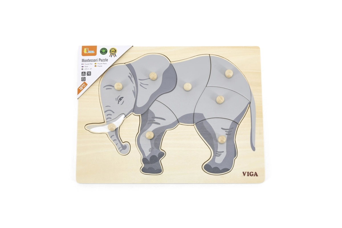 Ξύλινο Montessori παζλ εισαγωγής Ελέφαντας προσφέρει διασκέδαση και ταυτόχρονα ανάπτυξη λεπτής κινητικότητας και λογικής σκέψης στα παιδιά. Χάρη στα κουμπώματα σε κάθε κομμάτι, ο χειρισμός είναι εύκολος ακόμη και για τα πιο μικρά. Ιδανικό για παιδιά από 18 μηνών.