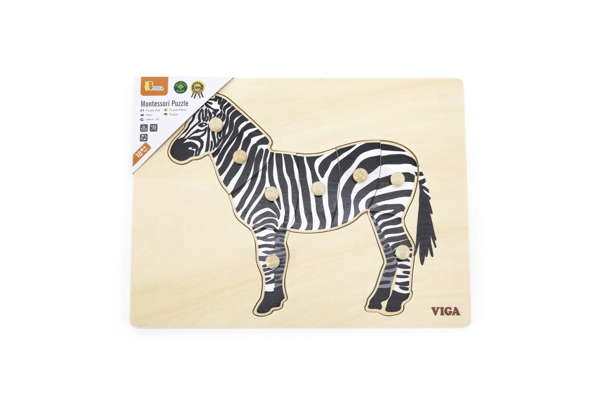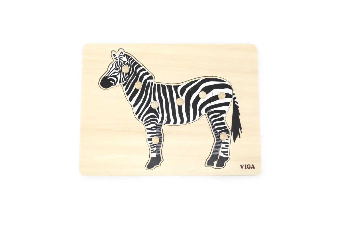 Αυτό το ξύλινο παζλ με ζέβρα είναι το ιδανικό πρώτο παζλ για τους μικρότερους. Τα επιμέρους κομμάτια με στρογγυλές λαβές πιάννονται εύκολα, υποστηρίζοντας τη σωστή λαβή των δαχτύλων και ενισχύοντας τη συγκέντρωση. Το ασπρόμαυρο, υψηλής αντίθεσης μοτίβο τραβά το ενδιαφέρον και παρακινεί για επαναλαμβανόμενο παιχνίδι.