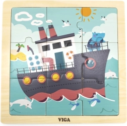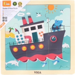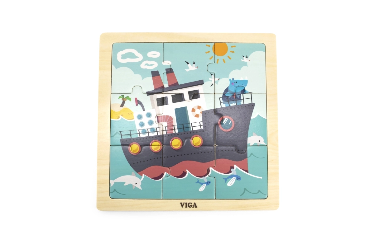Το ξύλινο παζλ VIGA με θέμα το καράβι προσφέρει 9 κομμάτια που πιάνονται εύκολα πάνω σε σταθερή ξύλινη βάση – ιδανικό για τους πιο μικρούς. Χάρη στα ασφαλή, μη τοξικά χρώματα, τις λείες άκρες και την ανθεκτική ξύλινη κατασκευή, είναι εξαιρετική επιλογή για το σπίτι και τον παιδικό σταθμό. Τα παιδιά θα απολαύσουν τη χαρά της ανακάλυψης και θα εξασκήσουν τη λεπτή κινητικότητα, τη λογική σκέψη και τις γνωστικές δεξιότητες.