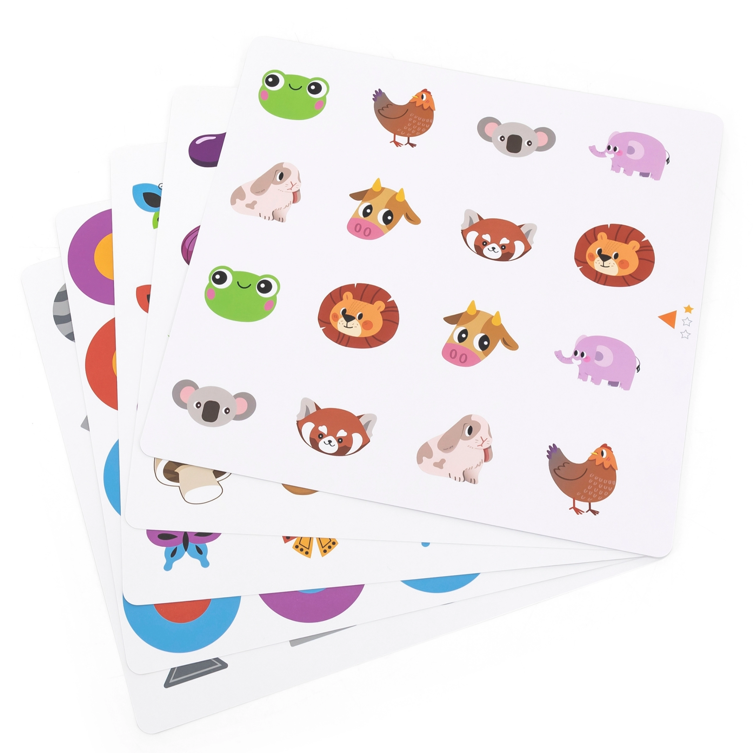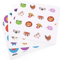 Περιλαμβάνονται 10 διπλής όψης κάρτες με ποικίλα θέματα (ζώα, αντικείμενα, φυτά). Απλώς τις αλλάζετε και προσαρμόζετε τα θέματα και τον βαθμό δυσκολίας στην ηλικία του παιδιού.