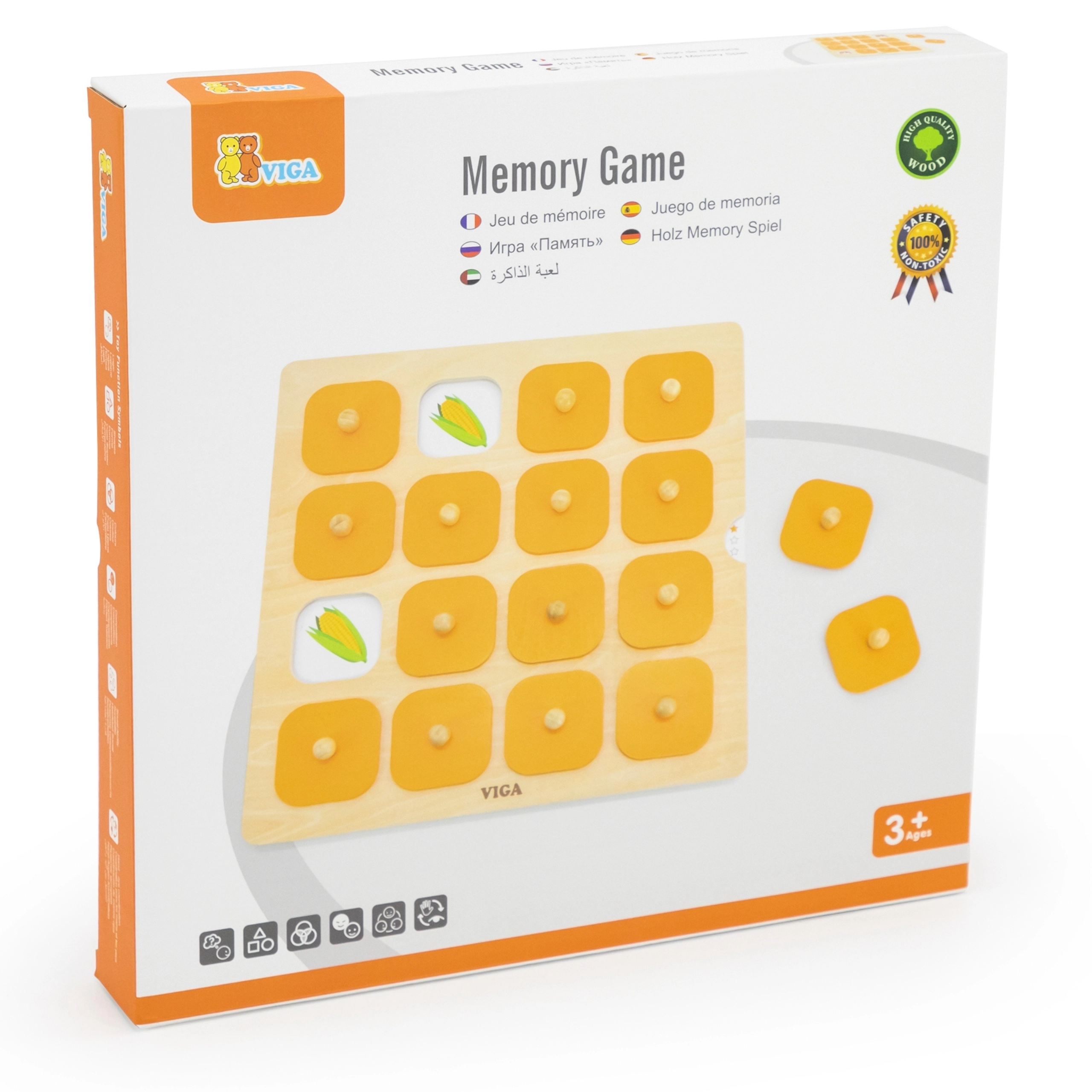 Το ξύλινο παιχνίδι μνήμης Viga συνδυάζει το κλασικό παιχνίδι «μνήμη» με ποιοτική κατασκευή και ελκυστικές εικονογραφήσεις. Τα παιδιά σηκώνουν τα καπάκια, αποκαλύπτουν τις εικόνες και αναζητούν όμοια ζευγάρια – ένας απλός μηχανισμός που γυμνάζει άριστα τη οπτική μνήμη, την προσοχή και τη συγκέντρωση. Χάρη στις ανταλλάξιμες κάρτες, τα θέματα αλλάζουν εύκολα και το παιχνίδι δεν κουράζει ποτέ.