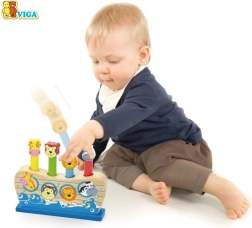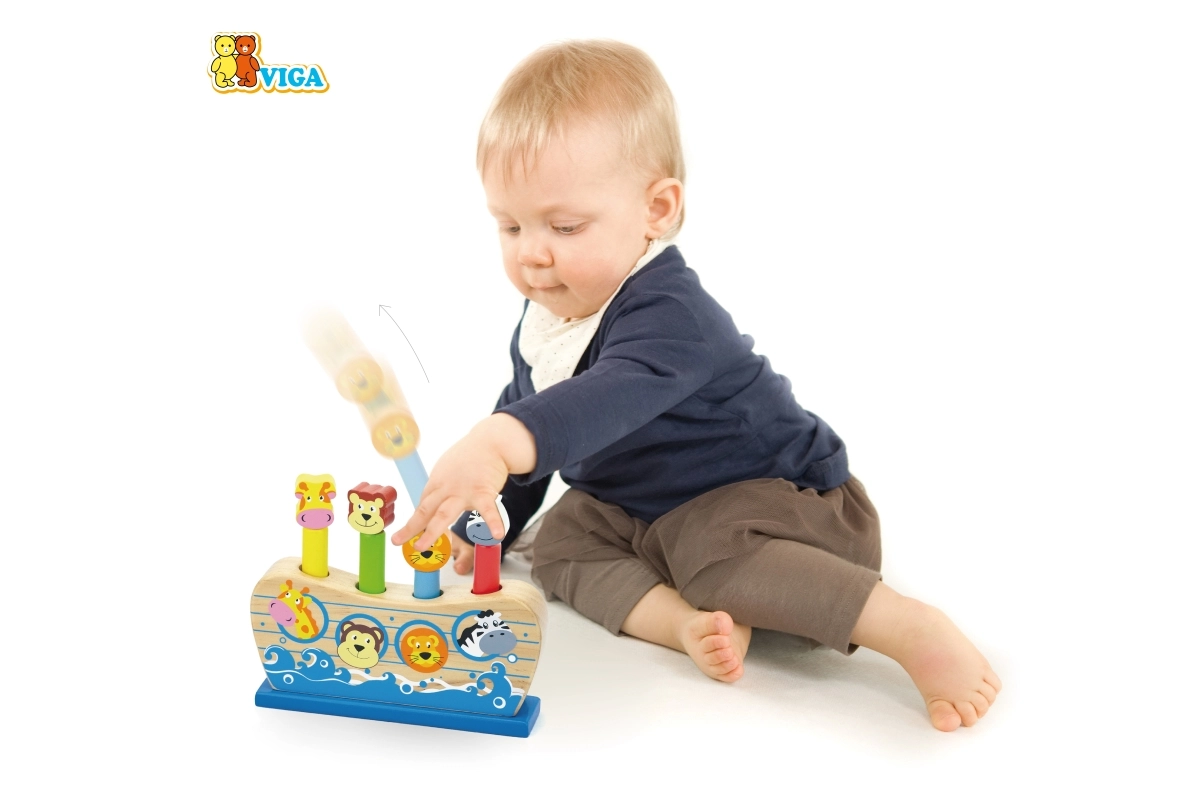 Τα ξύλινα πηδηχτά ζωάκια Viga θα ενθουσιάσουν κάθε παιδί με τα έντονα χρώματα τους και τις χαρούμενες φιγούρες καμηλοπάρδαλης, μαϊμούς, λιονταριού και ζέβρας. Αρκεί να πατήσετε το κεφαλάκι και το ζωάκι από την κιβωτό του Νώε θα πεταχτεί – ένα διασκεδαστικό παιχνίδι που ενισχύει τον συντονισμό ματιού–χεριού, την εκμάθηση χρωμάτων και την αναγνώριση ζώων. Η ασφαλής κατασκευή από ποιοτικό ξύλο και τα μη τοξικά χρώματα εξασφαλίζουν ήρεμο και χαρούμενο παιχνίδι.