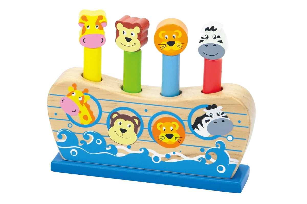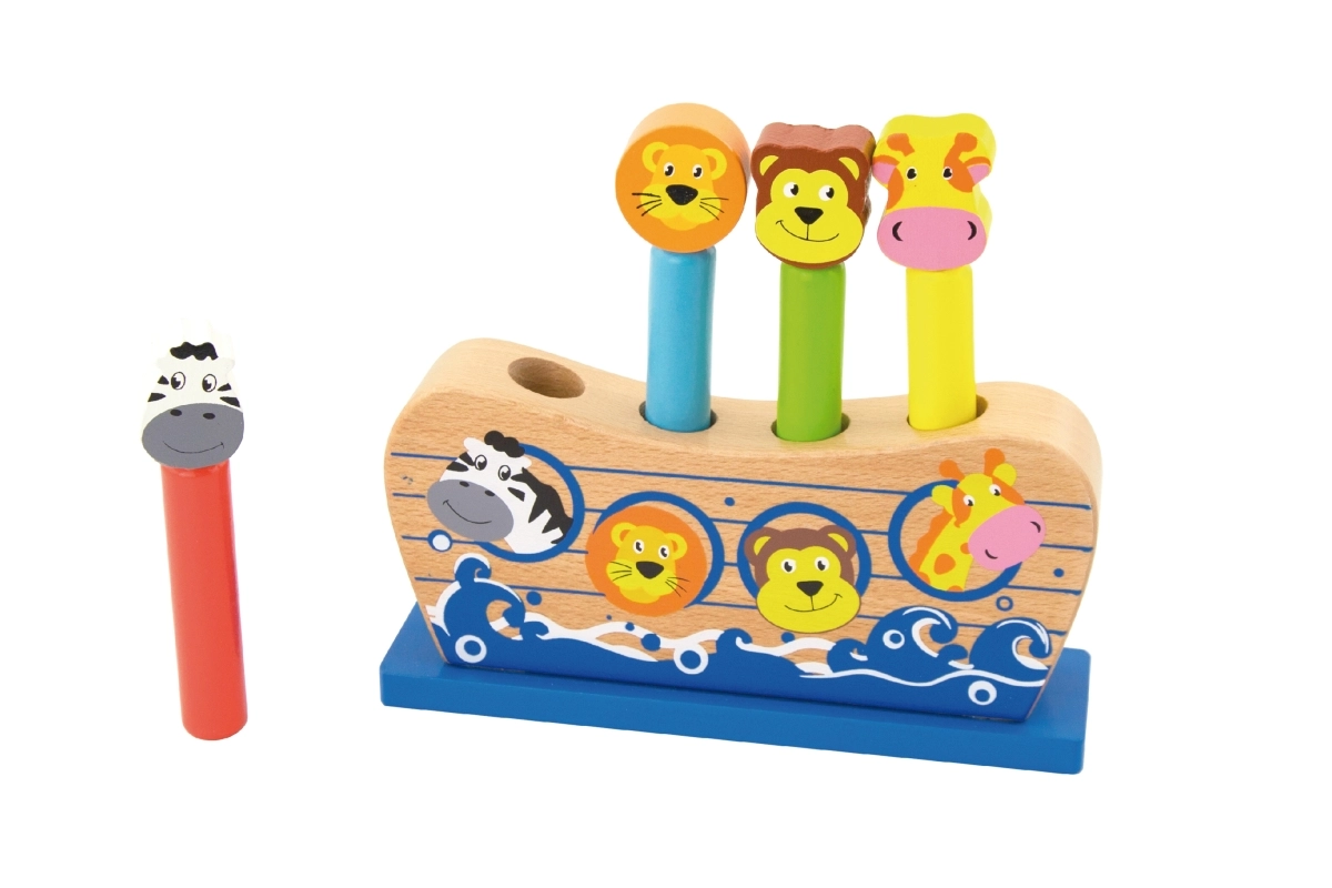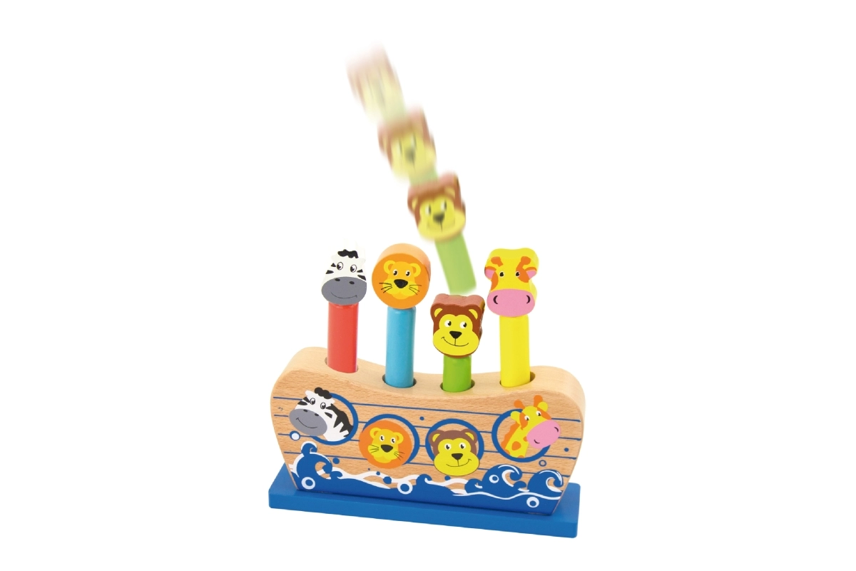 Πατήστε το κεφαλάκι και δείτε την καμηλοπάρδαλη, τη μαϊμού, το λιοντάρι και τη ζέβρα να πετάγονται χαρούμενα από το καράβι. Ιδανικό παιχνίδι για κατανόηση της αρχής δράσης–αντίδρασης.