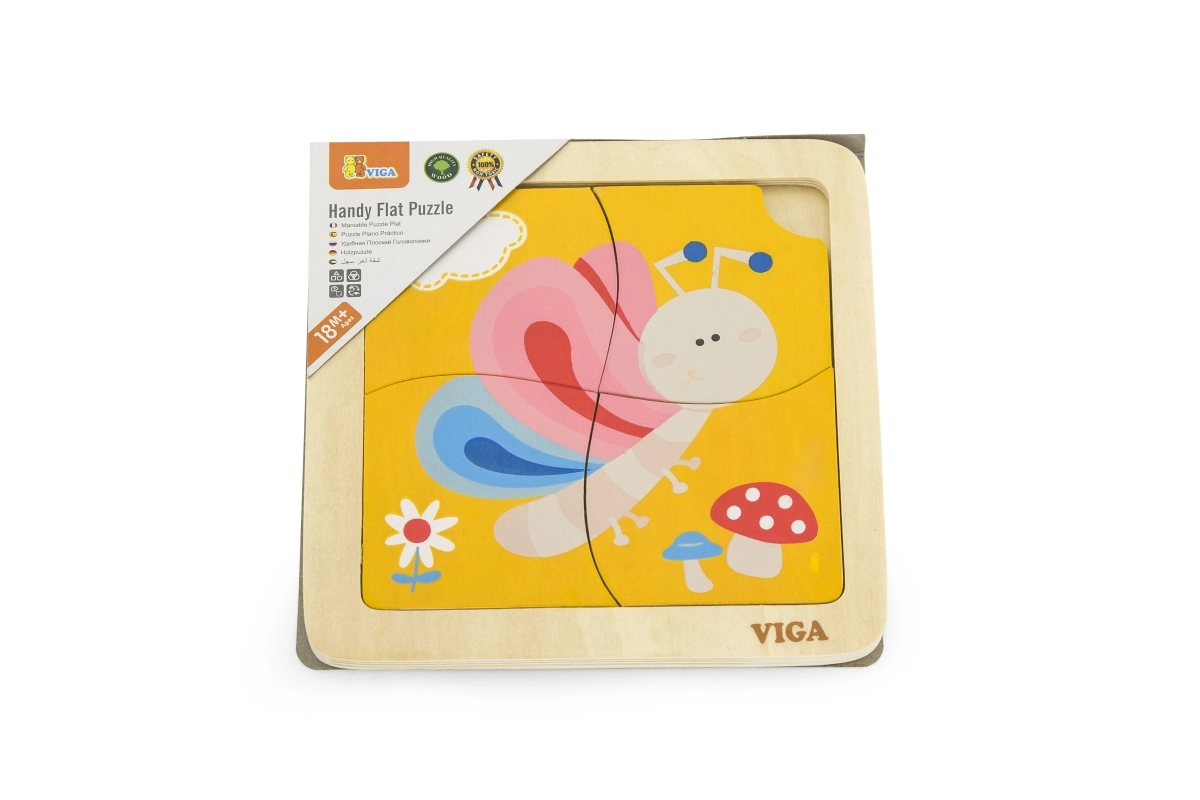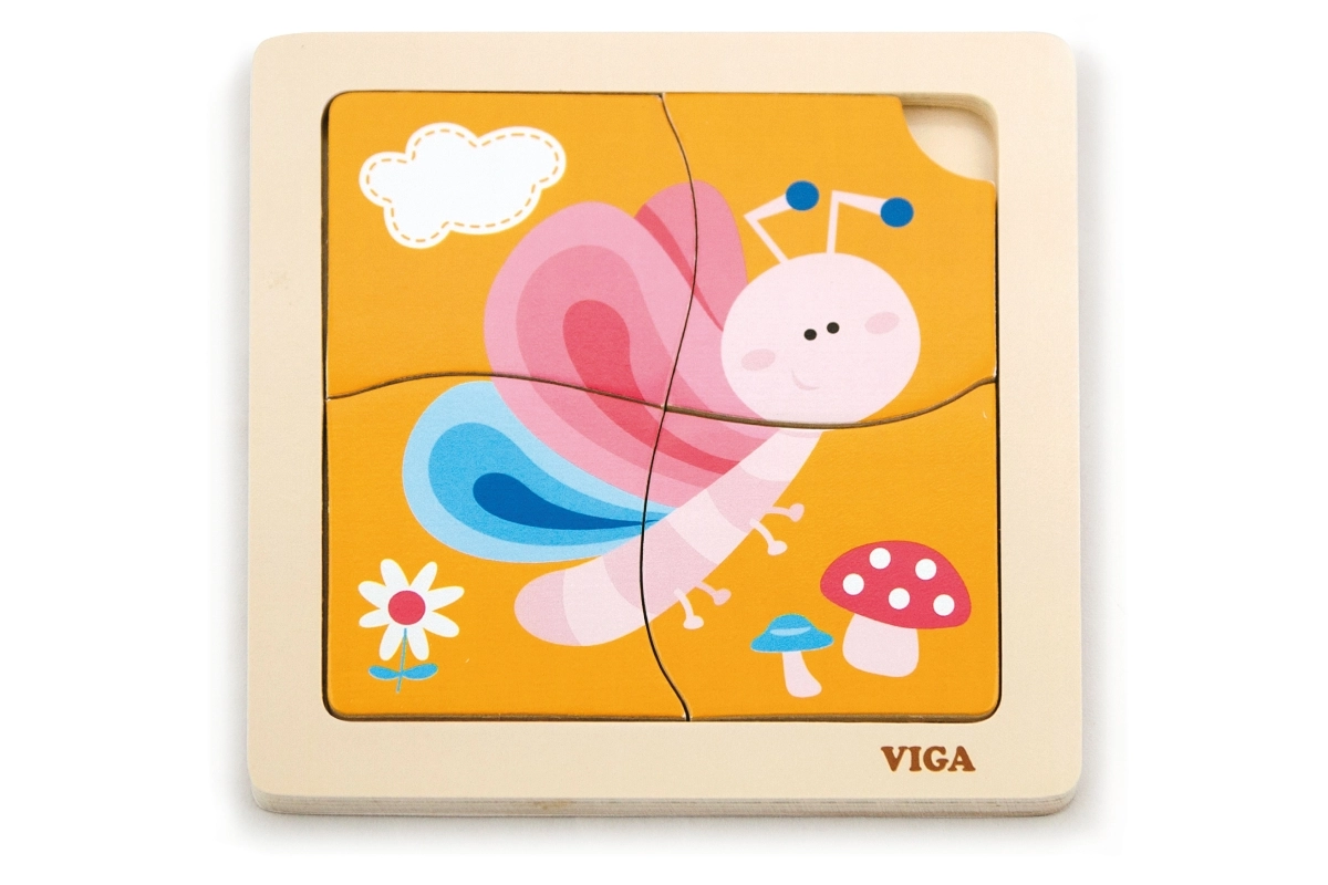 Αυτό το χαριτωμένο ξύλινο παζλ με πολύχρωμη πεταλούδα είναι εξαιρετική επιλογή για την πρώτη γνωριμία με τα παζλ. Τα τέσσερα στιβαρά κομμάτια κρατιούνται εύκολα από παιδικά χεράκια και τοποθετούνται στον ανθεκτικό ξύλινο δίσκο με υπόδειγμα. Ένα κομμάτι έχει πρακτική οπή για εύκολη αφαίρεση, ώστε τα παιδιά να μάθουν γρήγορα να χειρίζονται τα κομμάτια και να τα συναρμολογούν ξανά.