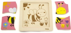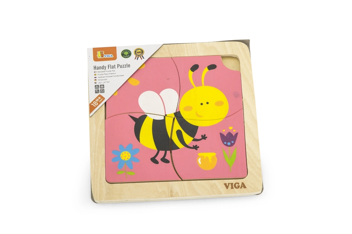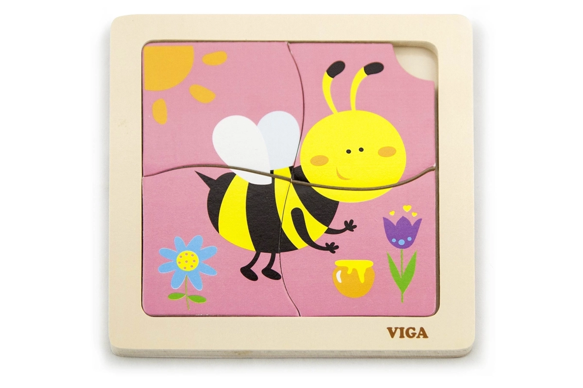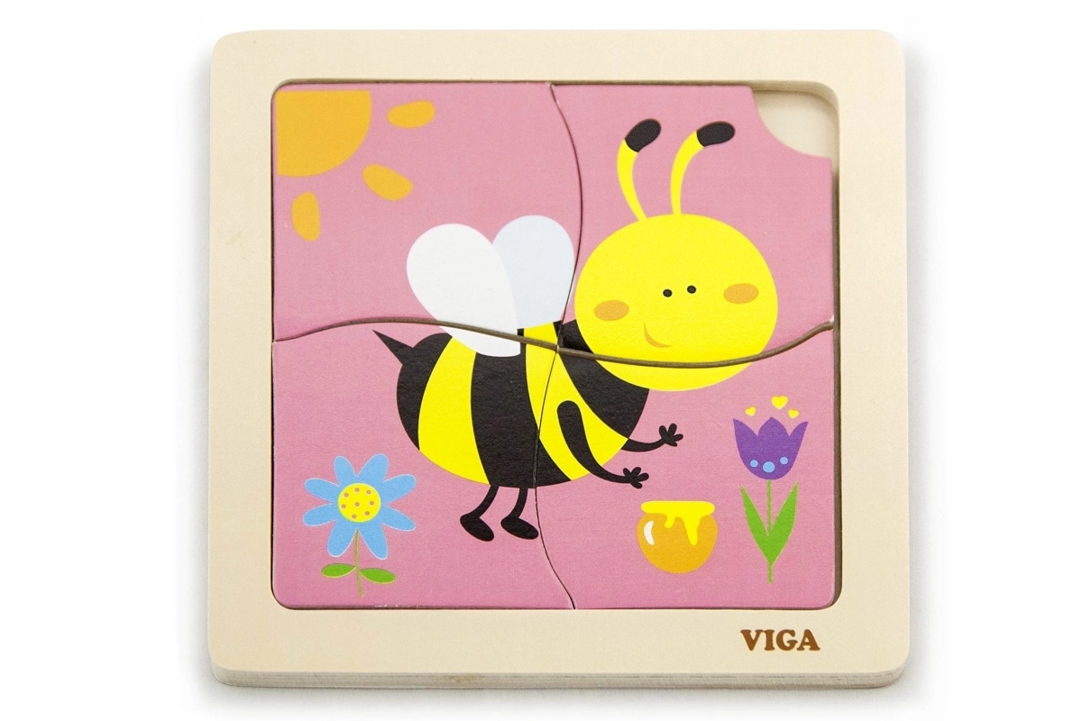 Το παζλ περιλαμβάνει 4 κομμάτια με θέμα τη μέλισσα, τα οποία συναρμολογούνται πάνω στην εικόνα της βασικής βάσης.