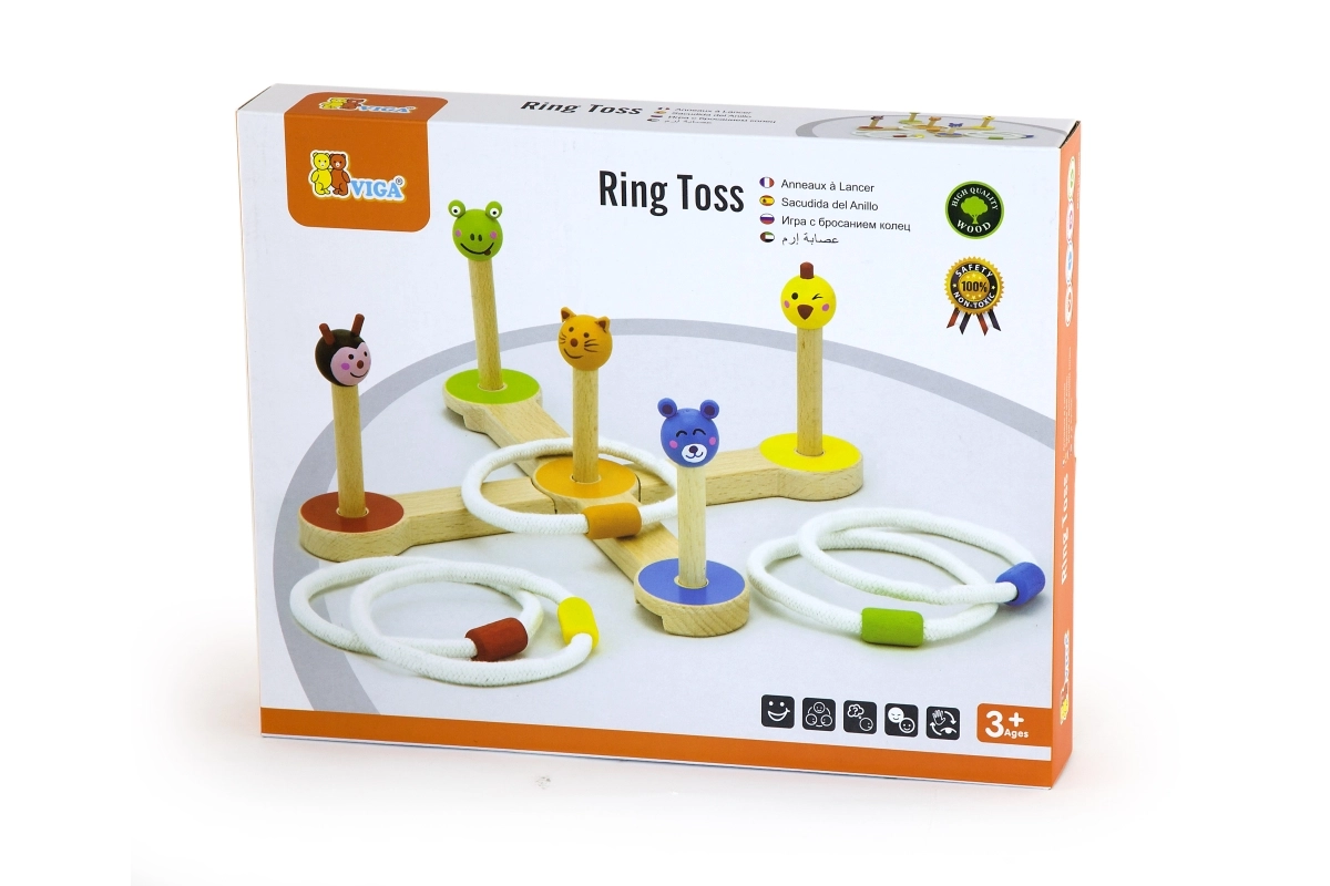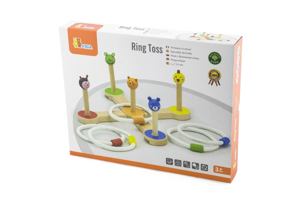 Το ξύλινο παιχνίδι VIGA ρίψης δαχτυλιδιών είναι ένα διασκεδαστικό και ενεργητικό παιχνίδι για την οικογένεια και τους φίλους, που ενισχύει την συντονισμένη κίνηση χεριού-ματιού και τις δεξιότητες των παιδιών σας χάρη στις έγχρωμες φιγούρες και τους απλούς κανόνες.