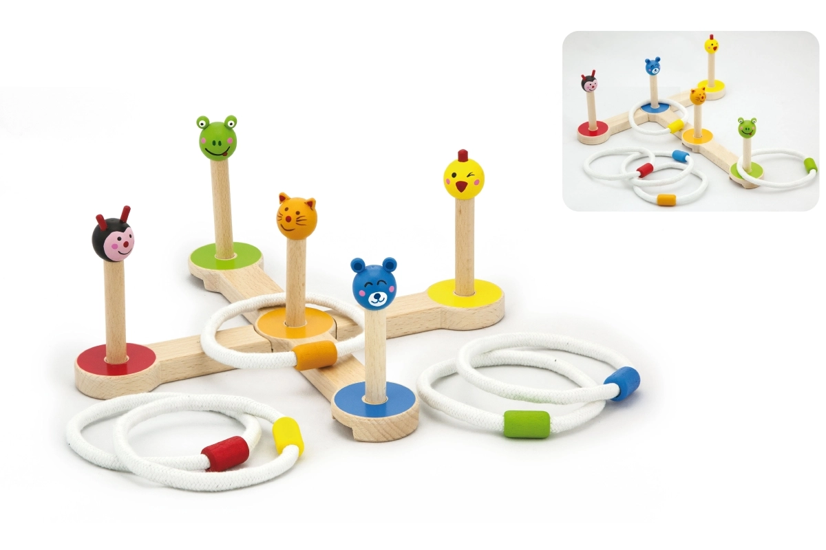 Αυτό το παιχνίδι μαθαίνει στα παιδιά να ρίχνουν τα δαχτυλίδια με ακρίβεια, βοηθώντας στην ανάπτυξη του συντονισμού χεριού-ματιού και βελτιώνοντας τα αντανακλαστικά.
