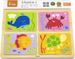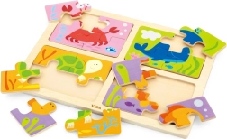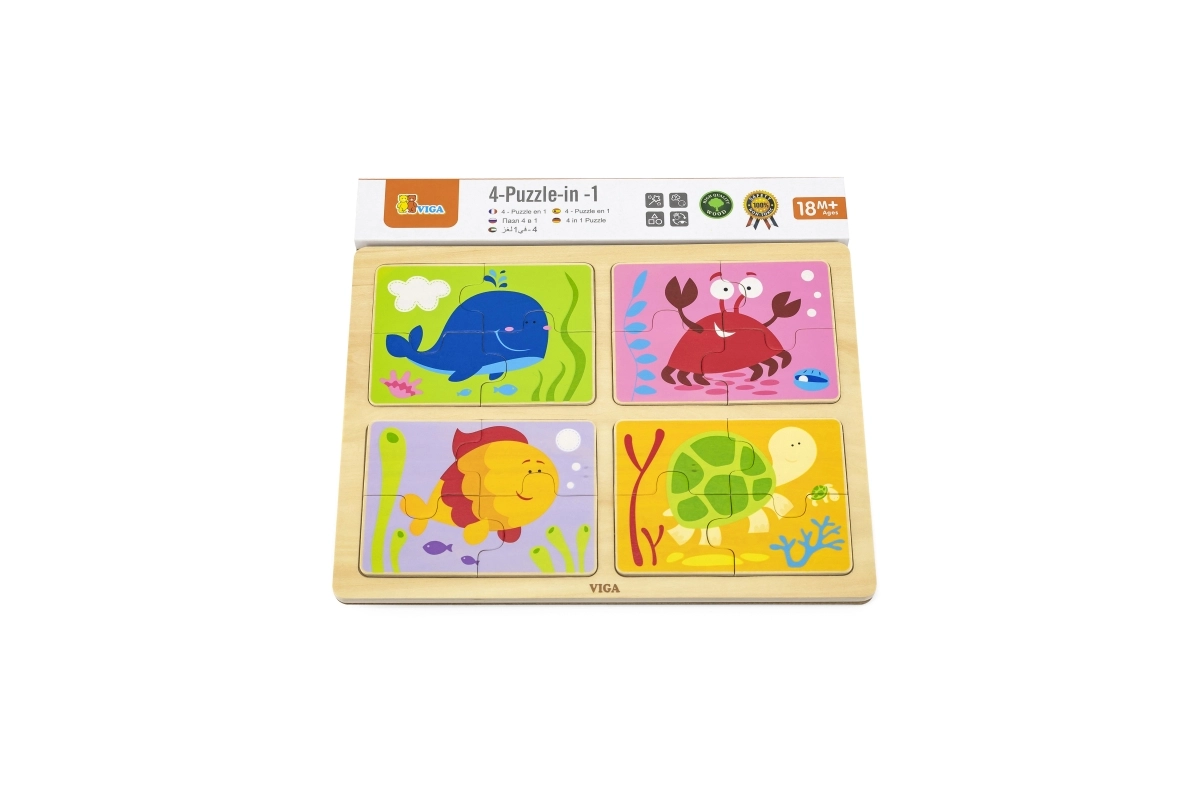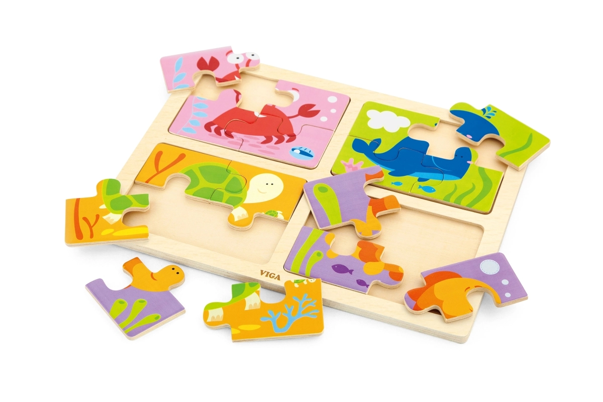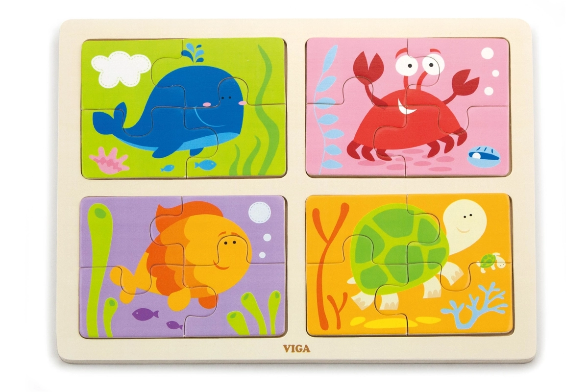 Αυτό το σετ περιλαμβάνει τέσσερα απλά ξύλινα παζλ με χαριτωμένα θέματα θαλάσσιων ζώων. Χάρη στον συμπαγή αριθμό κομματιών, είναι ιδανικά για την πρώτη επαφή των παιδιών με τα παζλ, αναπτύσσουν τον συντονισμό ματιού–χεριού και διδάσκουν υπομονή.