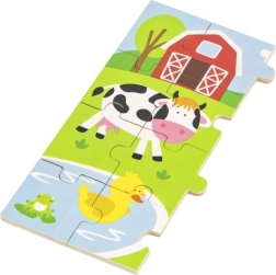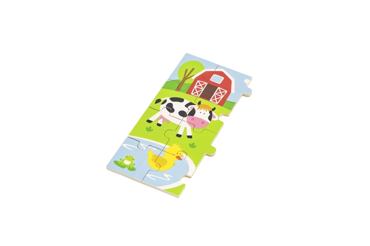 Αυτό το ξύλινο παζλ με αγροτικό θέμα είναι ιδανικό για παιδιά που μόλις εξοικειώνονται με τον κόσμο των παζλ και των γρίφων. Η εικονογράφηση της φάρμας είναι πολύχρωμη και ελκυστική, προσκαλώντας σε παιχνίδι και μάθηση. Το παζλ μπορεί