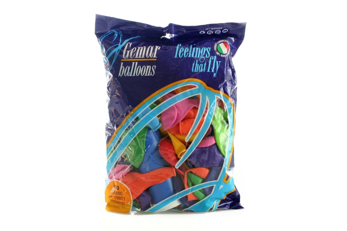 Το σετ περιλαμβάνει πολύχρωμα μπαλόνια, όπως κόκκινα, μπλε, πράσινα, κίτρινα και άλλα, ώστε να μπορείτε να επιλέξετε τα χρώματα σύμφωνα με τις ανάγκες σας.