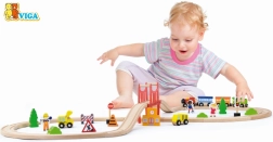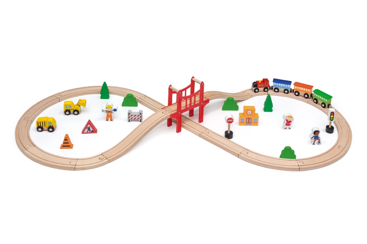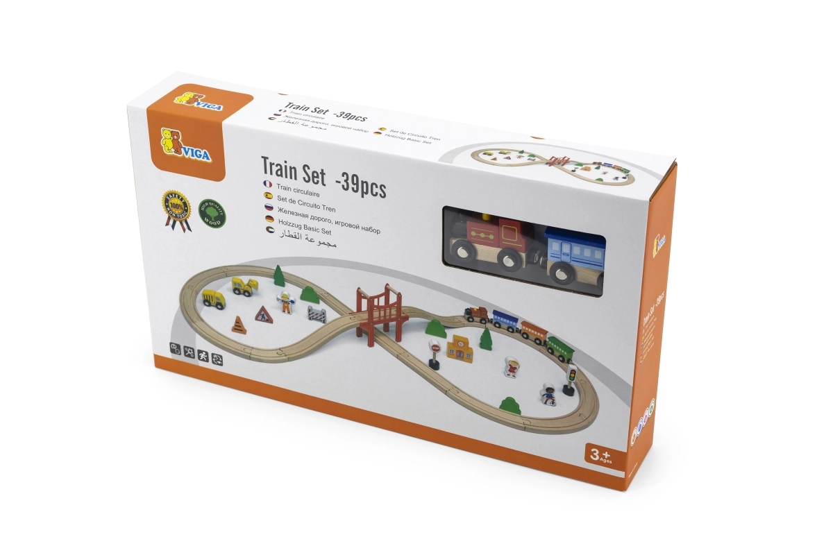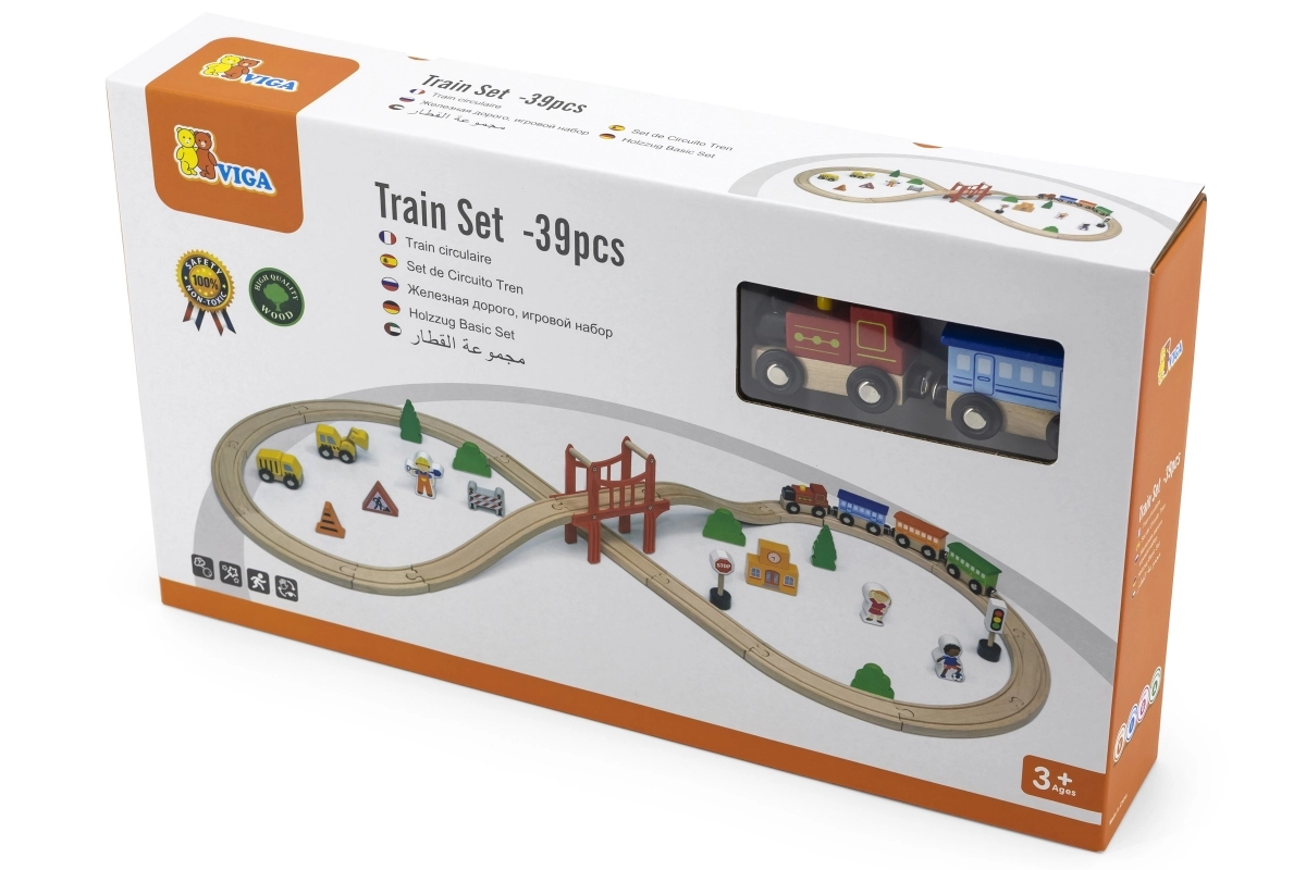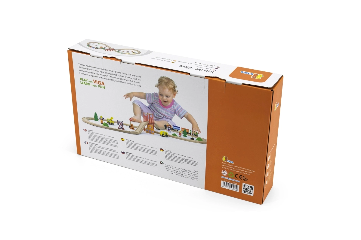 Η ξύλινη σιδηροδρομική διαδρομή προσφέρει ένα πλήρες σετ 39 τεμαχίων, επιτρέποντας ατελείωτες δυνατότητες συναρμολόγησης και ανάπτυξη της παιδικής φαντασίας.