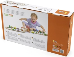 Βυθιστείτε στον κόσμο του παιχνιδιού και της φαντασίας με αυτή τη στιβαρή ξύλινη σιδηροδρομική διαδρομή, ιδανική για μικρούς σιδηροδρομικούς. Η διαδρομή έχει σχεδιαστεί με γνώμονα την ασφάλεια των παιδιών, χάρη στα ποιοτικά υλικά και τις ανθεκτικές συνδέσεις.