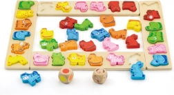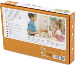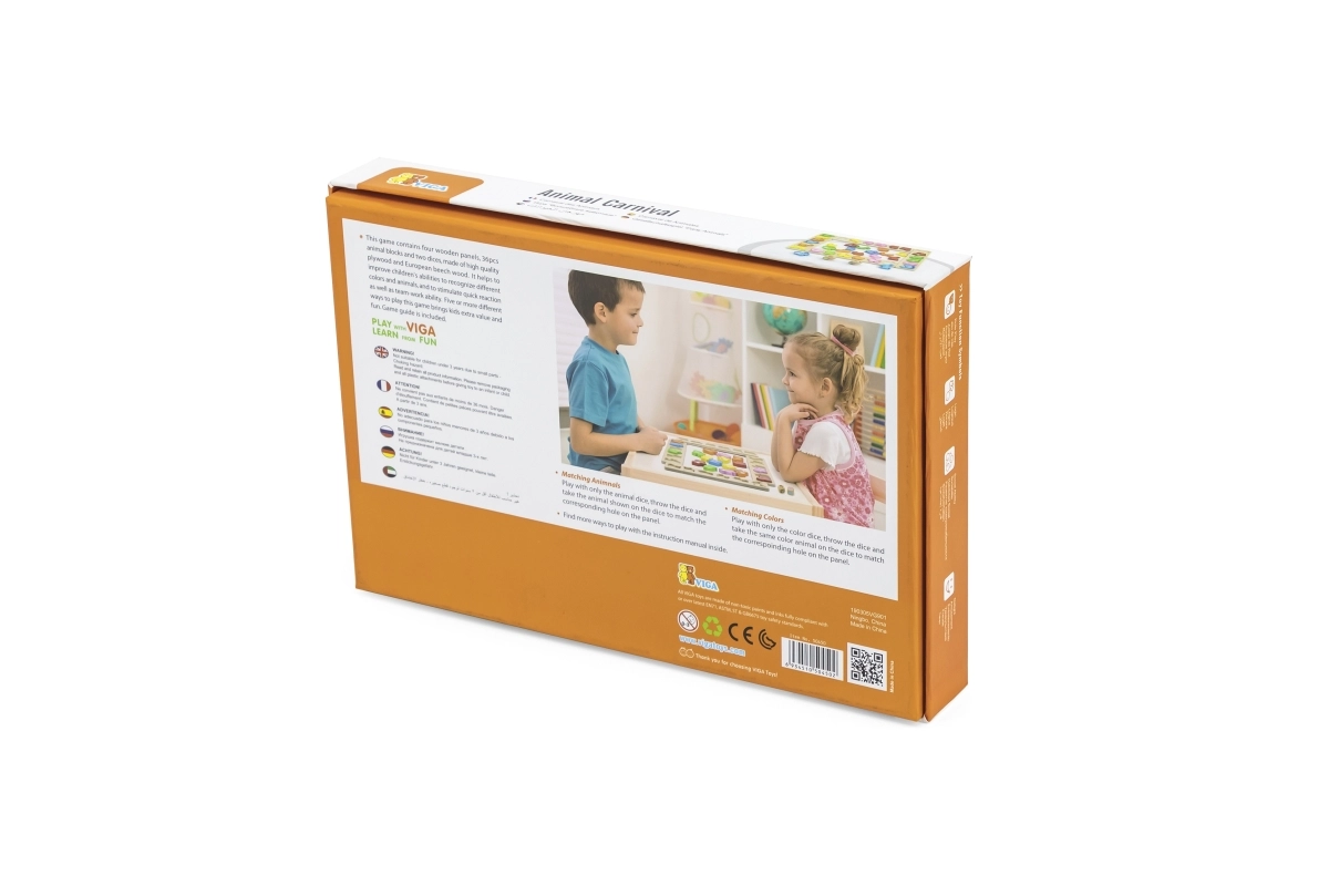 Διασκεδαστικό ξύλινο παιχνίδι για παιδιά από 3 ετών που αναπτύσσει την αναγνώριση χρωμάτων και ζώων, εξασκεί το γρήγορο σκεπτικό και τις αντιδράσεις και ενισχύει τις γλωσσικές, αριθμητικές και ομαδικές δεξιότητες. Το σετ από ποιοτικό κόντρα πλακέ και οξιά περιλαμβάνει 4 πίνακες, 36 κομμάτια-ζώα και δύο ζάρια – ένα με χρώματα και ένα με ζώα.