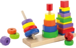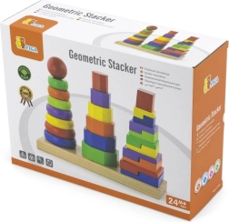 Η ξύλινη πυραμίδα παζλ είναι ένα ιδανικό παιχνίδι για παιδιά από 2 ετών, που υποστηρίζει την ανάπτυξη της κινητικότητας και την αναγνώριση σχημάτων χάρη στα πολύχρωμα γεωμετρικά κομμάτια.
