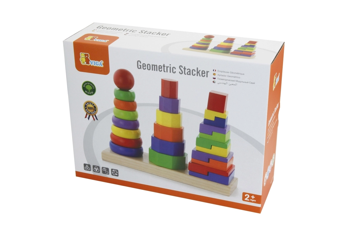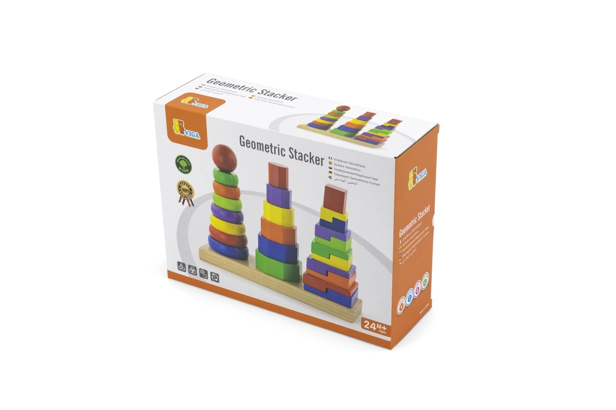Η ποικιλία σχημάτων και χρωμάτων των ξύλινων κομματιών βοηθά τα παιδιά να αναγνωρίζουν και να ονομάζουν σχήματα και χρώματα.