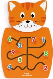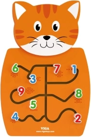 Ξύλινη γάτα με λαβύρινθους για μετακίνηση αριθμών και ανάπτυξη λεπτής κινητικότητας.