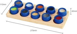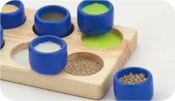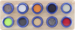 Αυτό το ξύλινο απτικό σετ ταξινόμησης συνδυάζει τις αγαπημένες αρχές των sorters με βαθύτερη αισθητηριακή διέγερση. Η βάση με δέκα οπές και το σετ δέκα κυλίνδρων με διαφορετικές επιφάνειες και υλικά υποστηρίζουν τη συγκέντρωση, τη λογική σκέψη και την ανάπτυξη της λεπτής κινητικότητας.