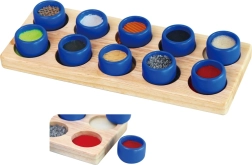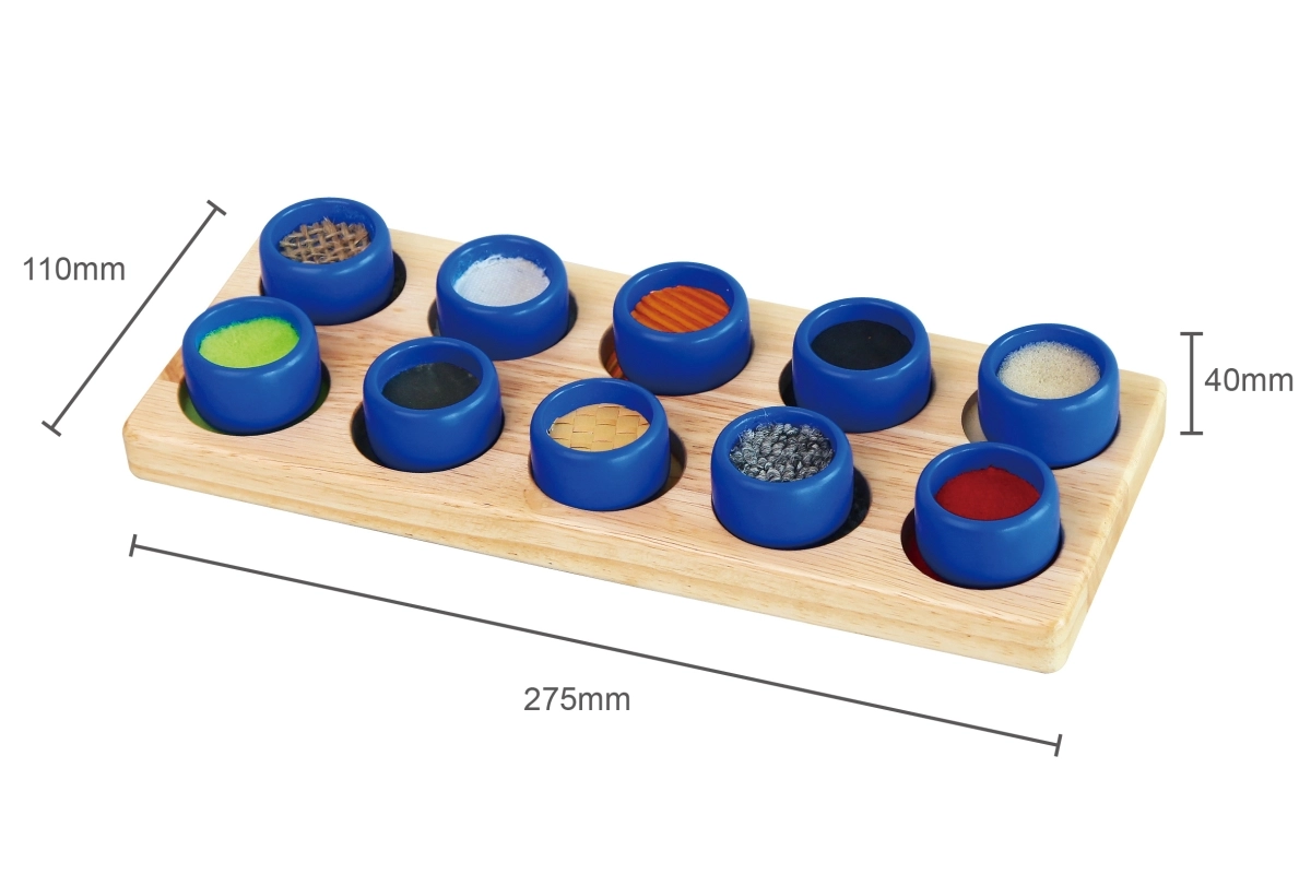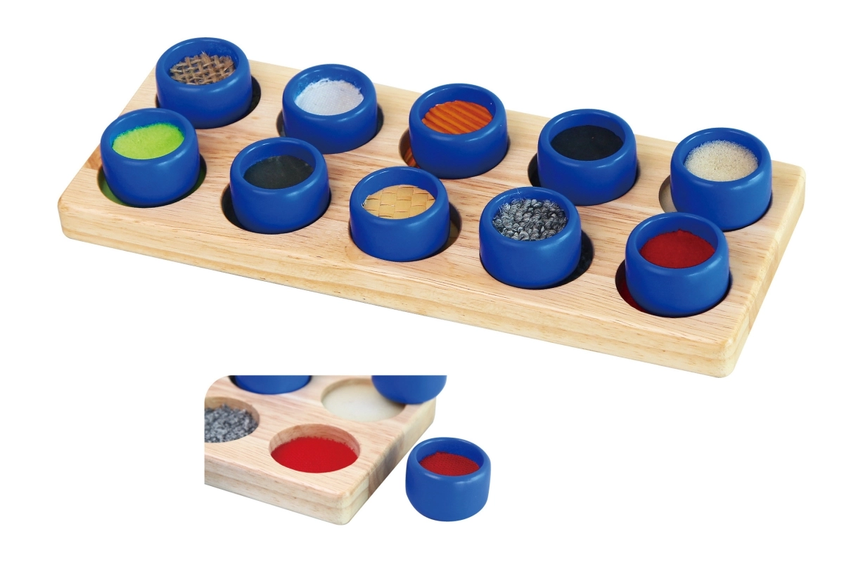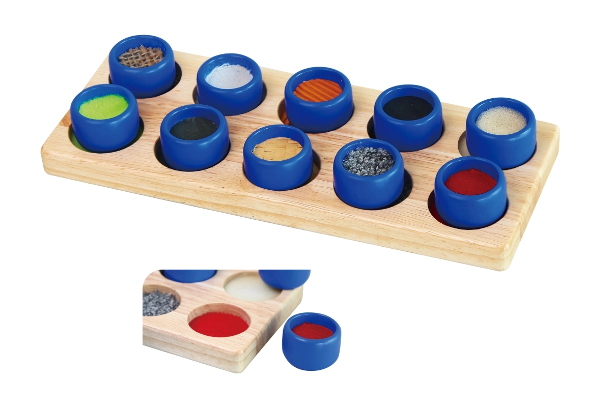 Το παιδί έχει ως στόχο, σύμφωνα με το αίσθημα στην αφή, να βρει την αντίστοιχη υφή και να αντιστοιχίσει τον κύλινδρο στη σωστή οπή – χωρίς χρήση όρασης. Έτσι εξασκούνται οι απτικές, αιθουσαίες και ιδιοδεκτικές διεργασίες, που είναι θεμελιώδεις στην προσχολική ηλικία. Η στιβαρή ξύλινη κατασκευή εξασφαλίζει ανθεκτικότητα και μεγάλη διάρκεια ζωής.