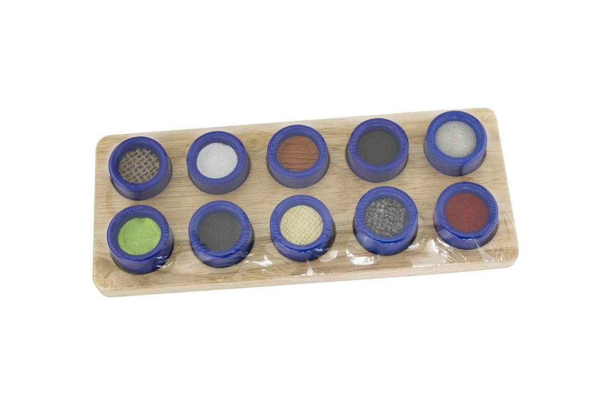 Τα παιδιά αναγνωρίζουν τις επιφάνειες μόνο με την αφή και μαθαίνουν να τις αντιστοιχίζουν σωστά, ενισχύοντας τη συγκέντρωση και την αισθητηριακή ευαισθησία.