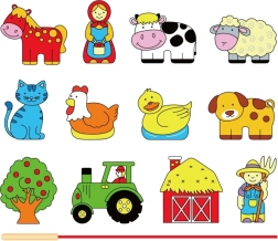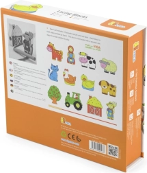 Τα μπλοκ αναπαριστούν διάφορα αγροτικά σχήματα όπως ζώα, τρακτέρ, αχυρώνα και άλλα, ενθαρρύνοντας το δημιουργικό παιχνίδι και την αφήγηση ιστοριών.