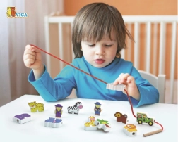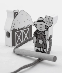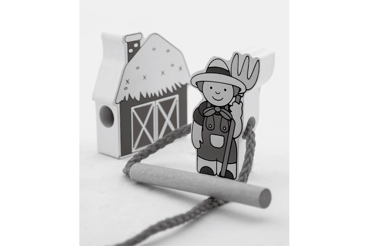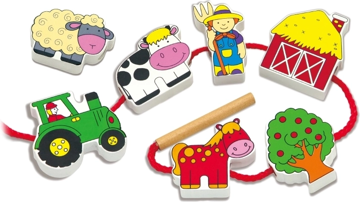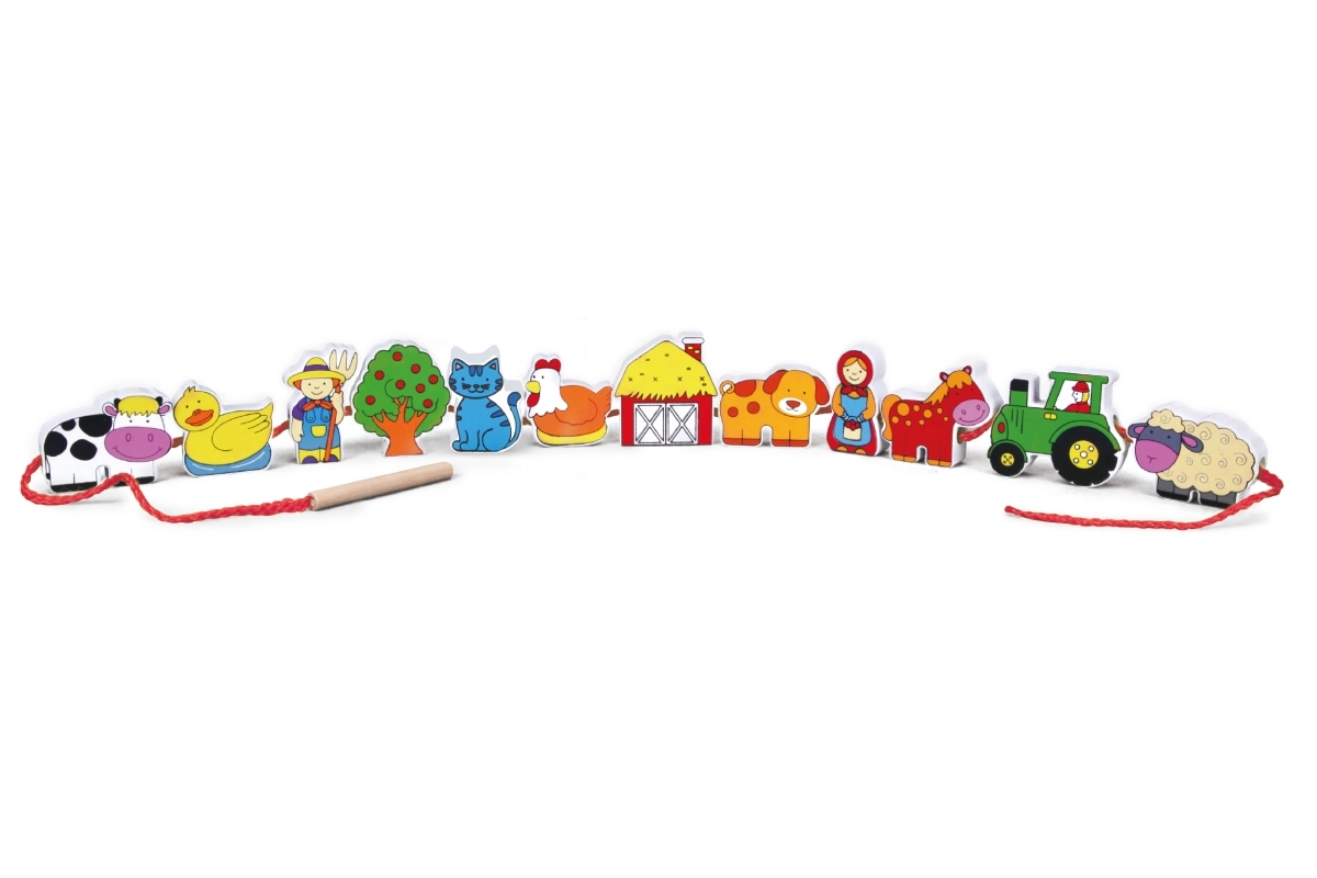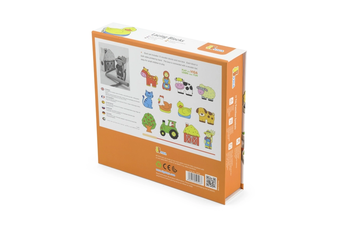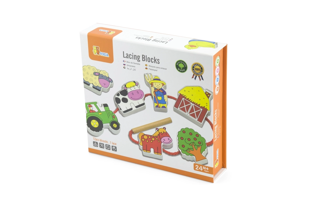 Τα VIGA Ξύλινα Περνάκια Αγροτικά Μπλοκ έχουν σχεδιαστεί για να γοητεύουν κάθε παιδί. Το σετ περιλαμβάνει 12 πολύχρωμα μπλοκ με αγροτικά μοτίβα, τα οποία το παιδί σας μπορεί να περνάει μαζί με το παρεχόμενο κορδόνι. Διατίθενται διάφορα σχήματα όπως αγελάδα, πάπια, γάτος, κότα, σκύλος, άλογο, πρόβατο, αγρότης και σύζυγός του, τρακτέρ, αχυρώνας και μηλιά.