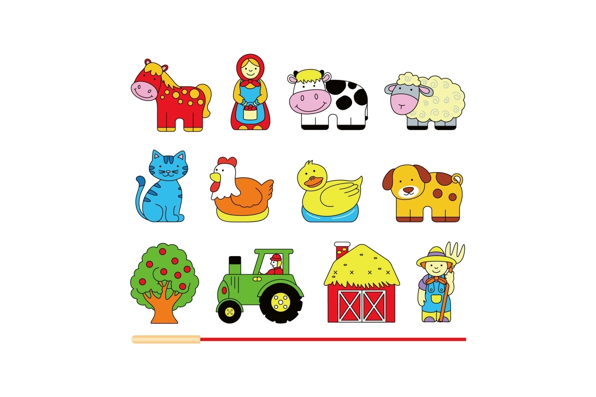 Η διασκέδαση συνδυάζεται με τη μάθηση, καθώς το παιδί παίζει και γνωρίζει με ευχάριστο τρόπο τη ζωή στη φάρμα και τα ζώα που ζουν σε αυτήν. Όλα τα κομμάτια είναι από λακαρισμένο ξύλο και βαμμένα με μη τοξικά χρώματα, που εξασφαλίζουν ασφαλές και χαρούμενο παιχνίδι.