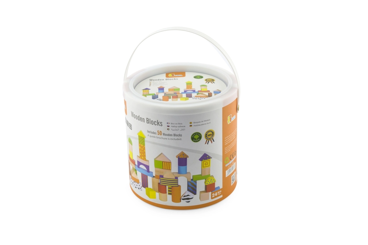 Ανακαλύψτε διασκέδαση και μάθηση μαζί με αυτό το σετ από ξύλινα δομικά τουβλάκια σε πρακτικό κουβά. Περιλαμβάνει 50 πολύχρωμα κομμάτια διαφόρων σχημάτων που αναπτύσσουν τη λεπτή κινητικότητα, τη δημιουργικότητα και τη χωρική φαντασία. Συμπεριλαμβάνεται εικονογραφημένο φυλλάδιο με οδηγίες για εύκολο ξεκίνημα. Ιδανικό για παιδιά από 2 ετών.
