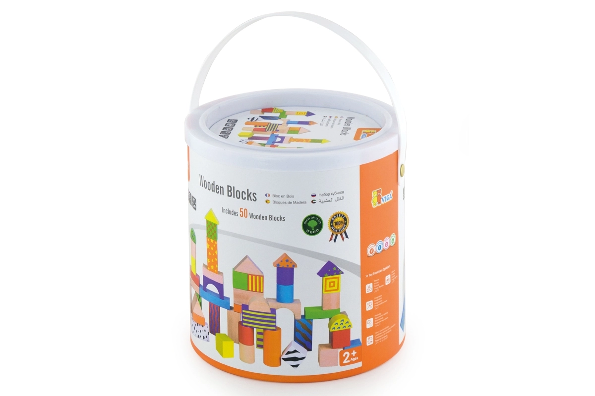Ξύλινα δομικά τουβλάκια σε κουβά – 50 κομμάτια