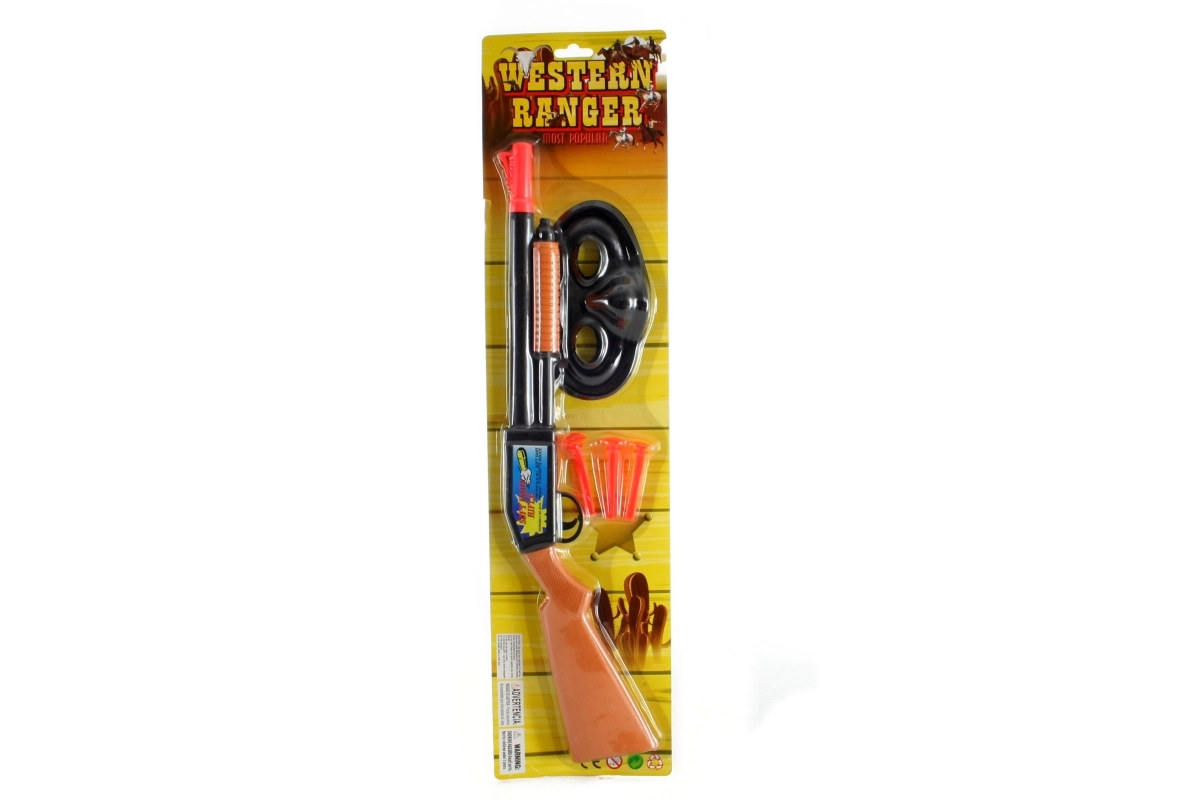 Ξεκινήστε για την Άγρια Δύση με αυτό το διασκεδαστικό γουέστερν σετ. Τα παιδιά θα απολαύσουν άφθονη δράση χάρη στην καραμπίνα με βεντουζάκια, η οποία είναι ασφαλής για παιχνίδι στο σπίτι και σε εξωτερικούς χώρους. Περιλαμβάνεται επίσης μάσκα προσώπου που προσδίδει αυθεντικότητα στο παιχνίδι.