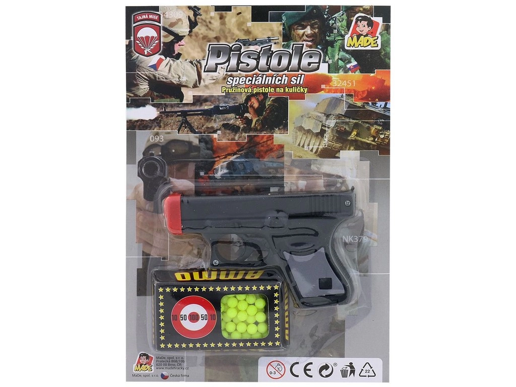 Διασκεδαστικό παιδικό πιστόλι με μπιλάκια μήκους 11 εκ. για μικρούς σκοπευτές από 3 ετών. Περιλαμβάνει σετ μπιλακιών και συσκευασία με τσεχικό σχεδιασμό. Ελαφρύ, ασφαλές και εύκολο στον χειρισμό παιχνίδι για παιχνίδι στο σπίτι και σε εξωτερικό χώρο. Ανταλλακτικά μπιλάκια μπορούν να αγοραστούν ξεχωριστά.