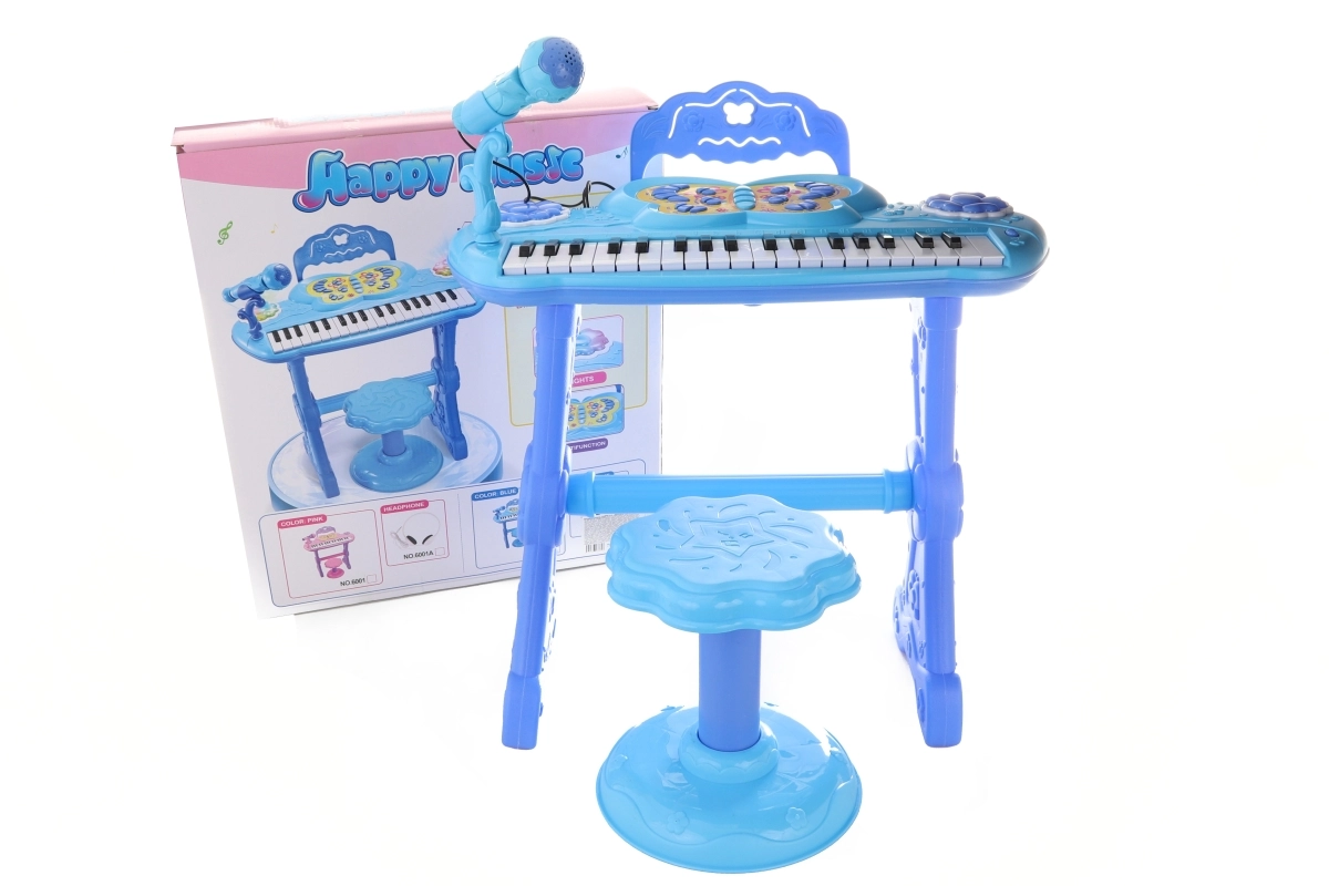Μπλε παιδικό πιανάκι προσφέρει όχι μόνο κλασικές νότες, αλλά και διάφορες συνοδευτικές μελωδίες και δυνατότητα αλλαγής μουσικών οργάνων. Στη συσκευασία περιλαμβάνεται μικρόφωνο και υποδοχή για MP3 player.