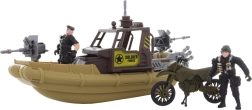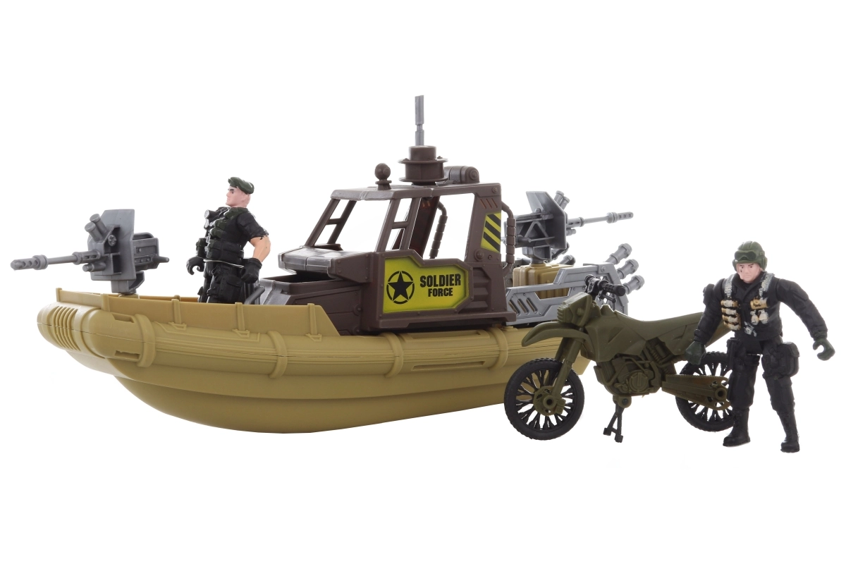 Ξεκινήστε τη δράση με ένα ολοκληρωμένο στρατιωτικό σετ που θα ενθουσιάσει όλους τους μικρούς λάτρεις της περιπέτειας. Η μεγάλη βάρκα και η γρήγορη μηχανή επιτρέπουν τη δημιουργία συναρπαστικών αποστολών και σκηνών, ενώ οι δύο λεπτοδουλεμένες φιγούρες στρατιωτών προσθέτουν αυθεντικότητα στο παιχνίδι. Το παιχνίδι έχει σχεδιαστεί για να υποστηρίζει τη φαντασία των παιδιών και την ανάπτυξη της λεπτής κινητικότητας.