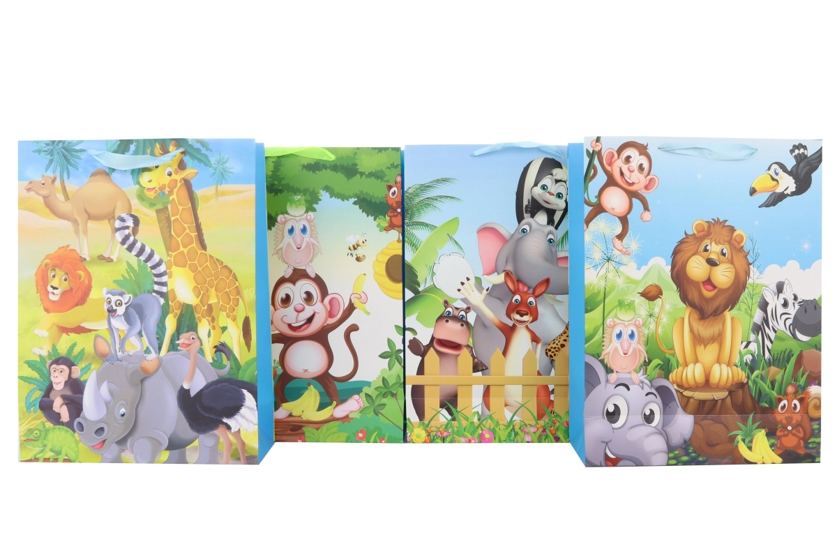 Στιλάτη τσάντα δώρου με θέμα σαφάρι σε μεγάλο μέγεθος που θα χαροποιήσει κάθε παραλήπτη. Χάρη στις διαστάσεις περίπου 50 × 40 εκ. χωράει και μεγαλύτερα δώρα, ενώ η ανθεκτική κατασκευή της εξασφαλίζει άνετη και ασφαλή μεταφορά. Εξαιρετική επιλογή για γενέθλια, γιορτές και άλλες περιστάσεις. Διαθέσιμη σε 4 διαφορετικά σχέδια με μοτίβα σαφάρι.