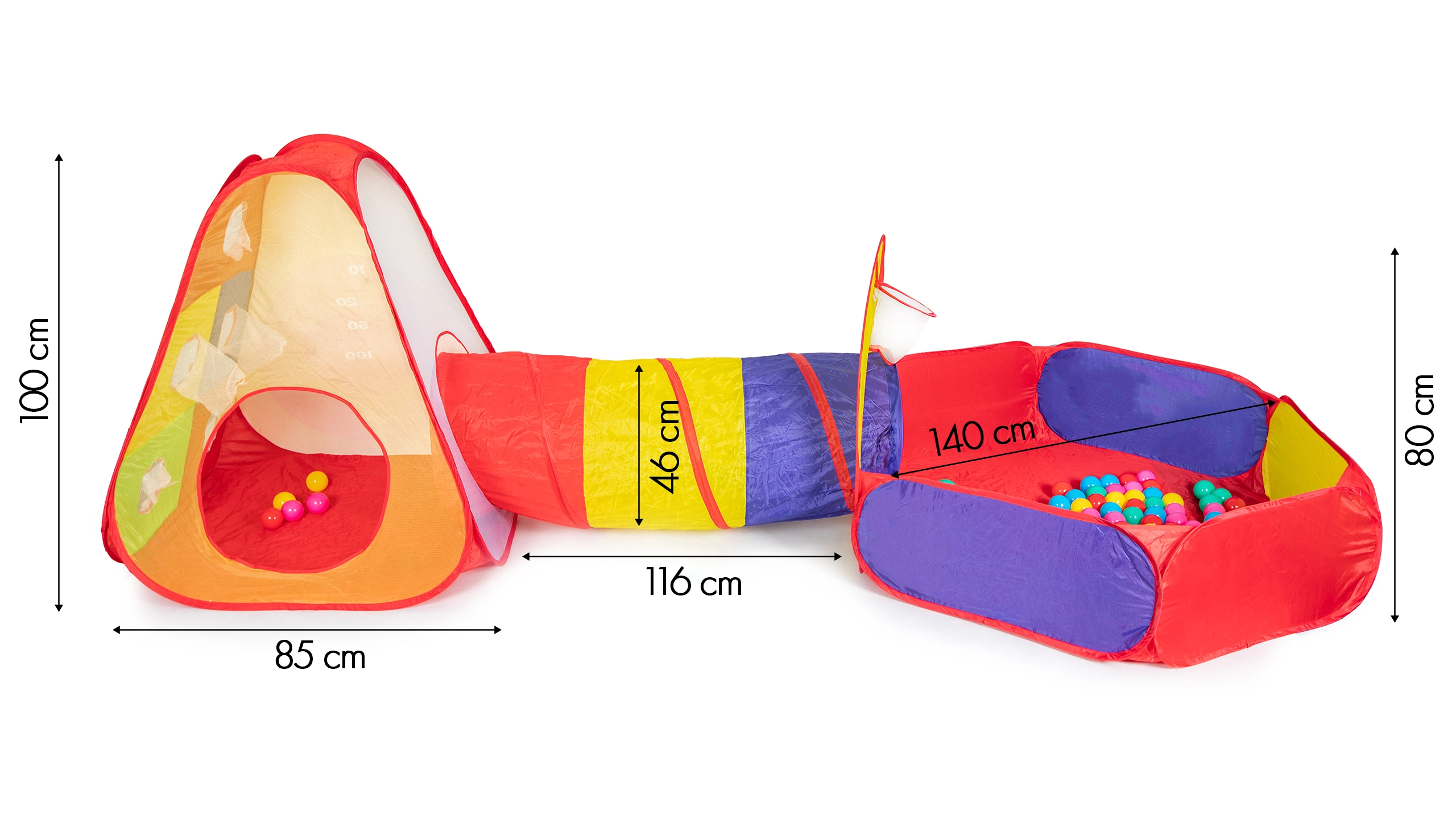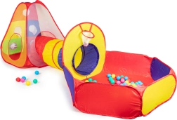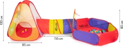 - Σκηνή, τούνελ, στεγνή πισίνα, 100 πλαστικά μπαλάκια, 3 μπαλάκια με βέλκρο