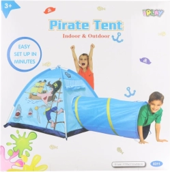 Διασκεδαστική παιδική σκηνή με πειρατικό μοτίβο και συνδεδεμένο τούνελ που προσφέρει ώρες δημιουργικού παιχνιδιού στο σπίτι και στον κήπο. Χάρη στις διαστάσεις περίπου 170 × 112 × 94 cm παρέχει αρκετό χώρο για παιχνίδι και κρυφτό. Η ελαφριά κατασκευή επιτρέπει εύκολη συναρμολόγηση και μεταφορά, ιδανική για παιδιά από 3 ετών.
