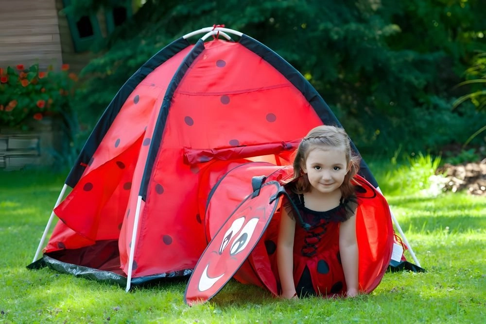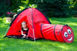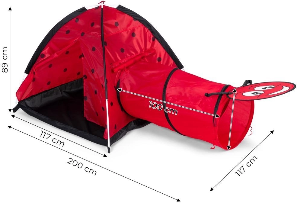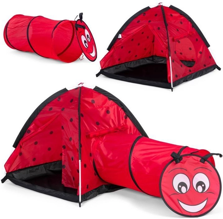 Μεταμορφώστε το δωμάτιο ή τον κήπο σε χώρο γεμάτο περιπέτειες. Η παιδική σκηνή με θέμα πασχαλίτσας προσκαλεί τα παιδιά σε εξερεύνηση και δημιουργικό παιχνίδι. Η κατασκευή τύπου ιγκλού με μία είσοδο και σύνδεση για τούνελ ενθαρρύνει την κίνηση, το μπουσούλημα και το κρυφτό, αναπτύσσοντας τη λεπτή κινητικότητα και τη φαντασία. Χάρη στον ελαφρύ σκελετό, η σκηνή μεταφέρεται εύκολα, ώστε τα παιδιά να τη χαίρονται παντού.