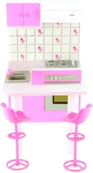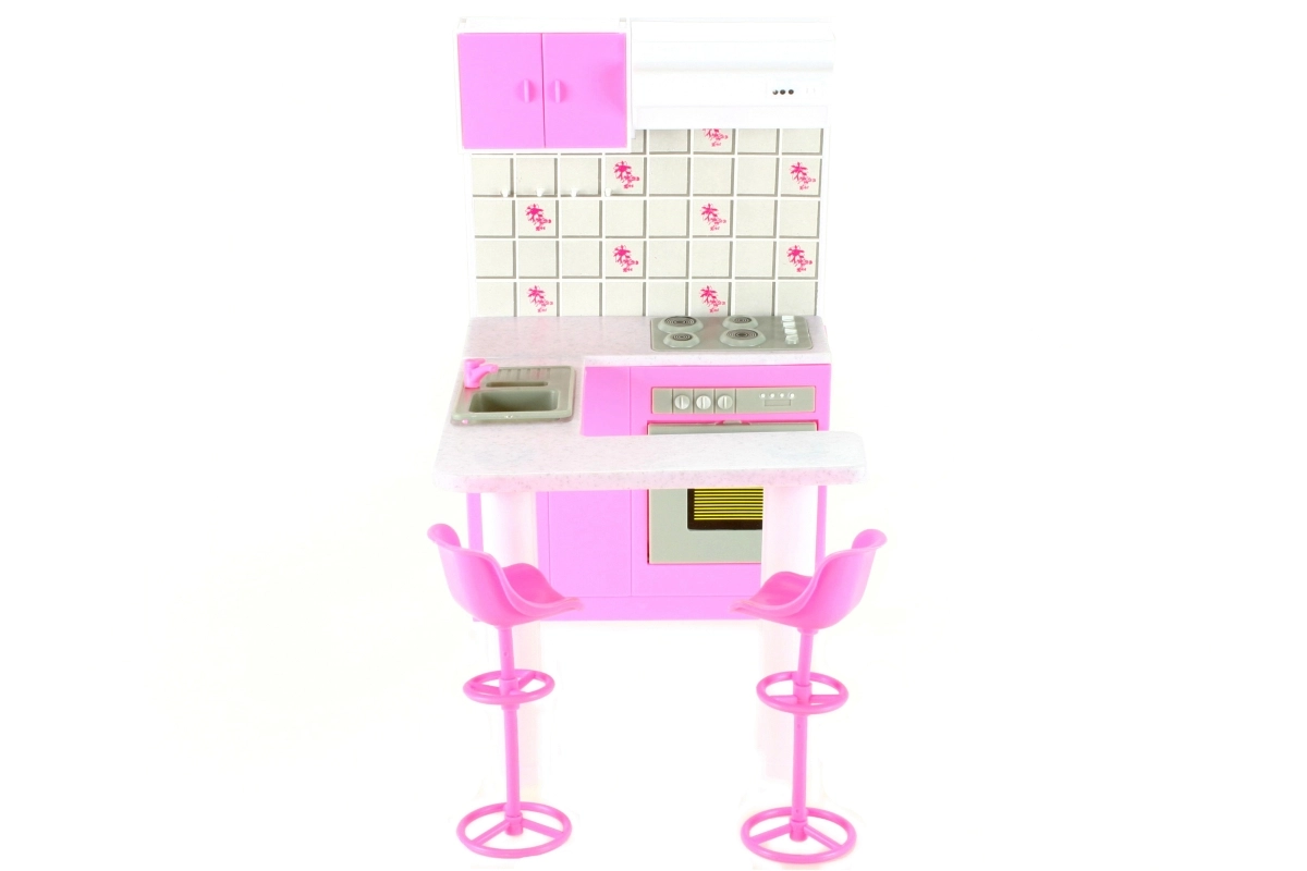 Ένα στιλάτο σετ κουζίνας για κούκλες της Glorie που μεταμορφώνει κάθε παιδικό δωμάτιο σε ένα μικρό γαστρονομικό βασίλειο. Περιλαμβάνει γωνιά κουζίνας με ανοιγόμενη φούρνο (διακοσμητικό), νεροχύτη και εστία (μη λειτουργικά), καθώς και τραπέζι φαγητού με δύο μπαρ σκαμπό. Ιδανικό για δημιουργικό παιχνίδι παιδιών από 3 ετών.