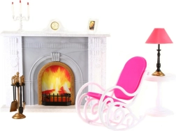 Στη συσκευασία περιλαμβάνονται κουνιστή πολυθρόνα για άνετο κάθισμα των κουκλών, τραπεζάκι με λειτουργική (διακοσμητική) λάμπα και στήριγμα με εργαλεία τζακιού. Δεν λείπουν οι διακοσμήσεις όπως κηροπήγιο, κάδρο και ρολόι για τέλεια ατμόσφαιρα. Χάρη στην πλαστική κατασκευή, το σετ είναι ελαφρύ, εύκολο στη συντήρηση και ασφαλές για τα παιδιά.