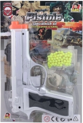 Διασκεδαστικό πλαστικό πιστόλι με σφαιρίδια μήκους 21 cm για μικρούς σκοπευτές από 3 ετών. Απλός ελατηριωτός μηχανισμός, ελαφριά κατασκευή και στη συσκευασία περιλαμβάνεται και πακέτο σφαιριδίων για άμεσο παιχνίδι. Ιδανικό για παιχνίδι στο σπίτι και έξω, ασφαλές παιχνίδι για παιδιά με διαισθητικό χειρισμό.