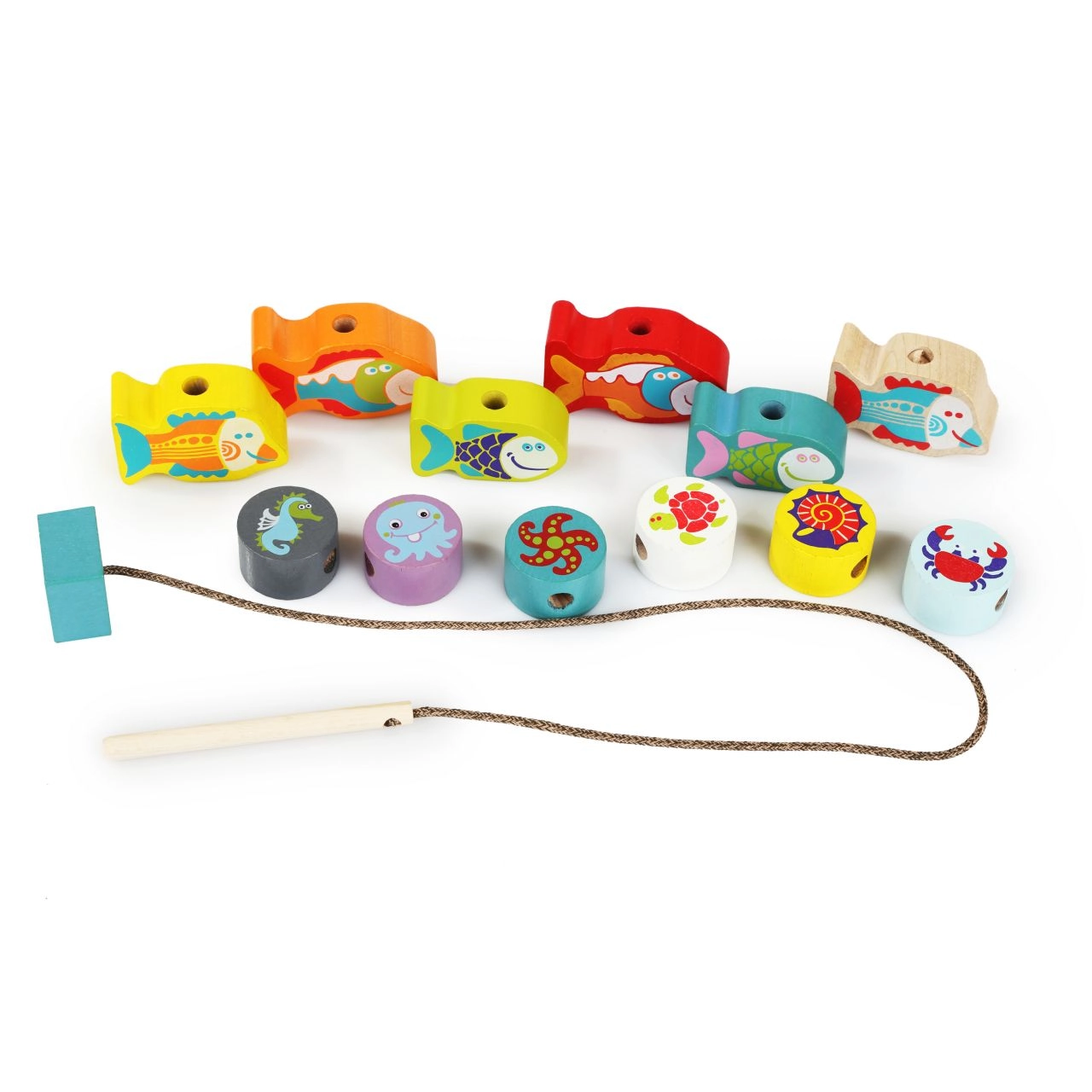 Ανακαλύψτε τη μαγεία του παιχνιδιού με ξύλινα περαστά στοιχεία, που βοηθούν στην ανάπτυξη της λεπτής κινητικότητας, της υπομονής και της μνήμης των παιδιών. Το σετ περιλαμβάνει: