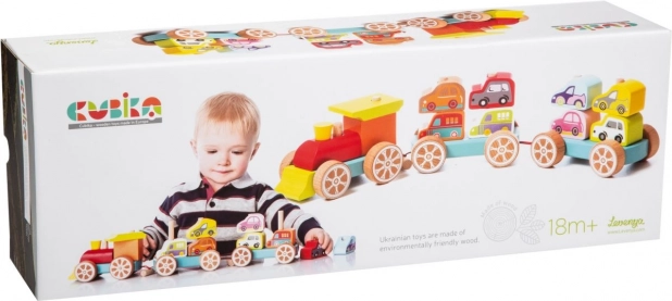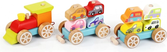 Αυτό το πολύχρωμο ξύλινο παζλ περιλαμβάνει 14 κομμάτια, με τα οποία τα παιδιά μπορούν να συναρμολογήσουν τρενάκι με δύο βαγόνια και οκτώ μικρά αυτοκίνητα. Παίζοντας όχι μόνο με τα μεμονωμένα κομμάτια, αλλά και αναπτύσσοντας τις αισθησιοκινητικές ικανότητες, τη λογική σκέψη και τη δημιουργικότητα.
